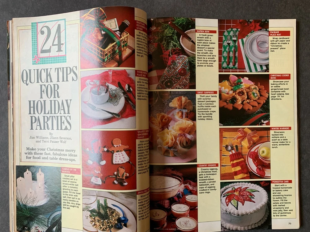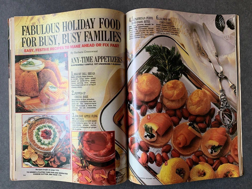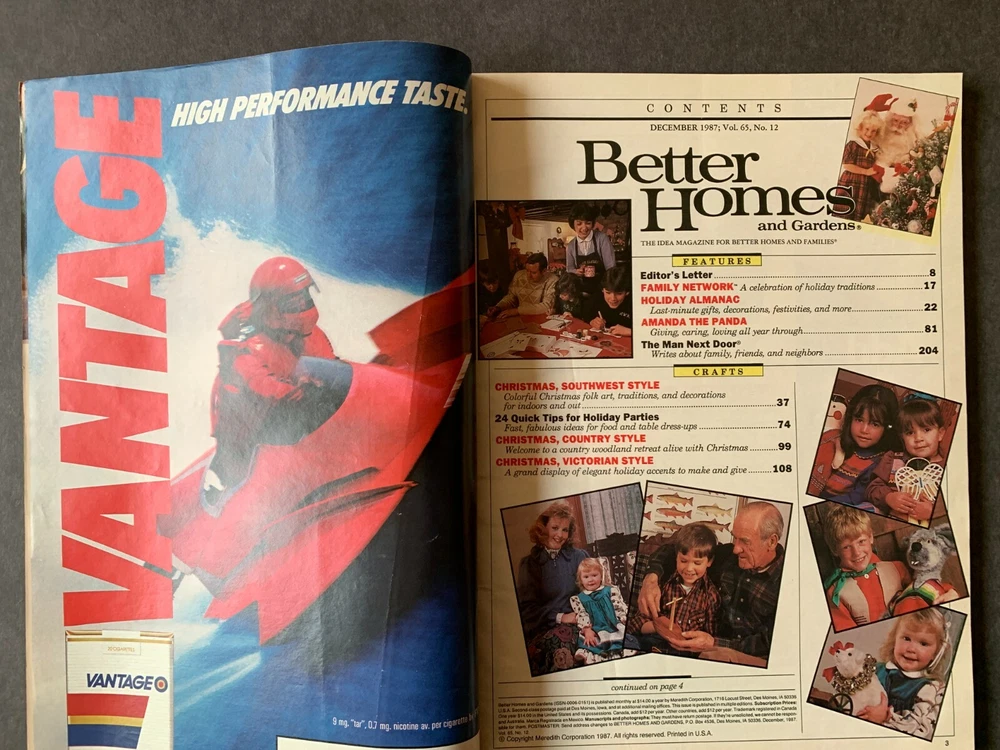 Collect a piece of history! Better Homes and Gardens Magazine December 1987 Features: Family Network, Holiday Almanac, Amanda The Panda, Christmas Southwest Style, Christmas Country Style, Christmas Victorian Style, 24 Quick Tips For Holiday Parties, Happy Hanukkah Recipes: Pepped-Up Cheese Bake, Holiday Apple Fling, Salmon On Corn Cakes, Holiday Spiral Wreath, Anise Bells, Prosciutto Souffle Roll In Parsley Sauce Ads: Hallmark, Commodore 64, Levi's, Texas Instruments, Fisher-Price, Lane, Ford, Sears, Nabisco, M&M's, Nestle, Jell-O, KitchenAid, True Value Good vintage condition. All pages are intact. Scuffs and discolorations. . Shipped with USPS. Will combine shipping, please send message with your order. Please visit our store to see more: https://www.ebay.com/str/historyinprogress