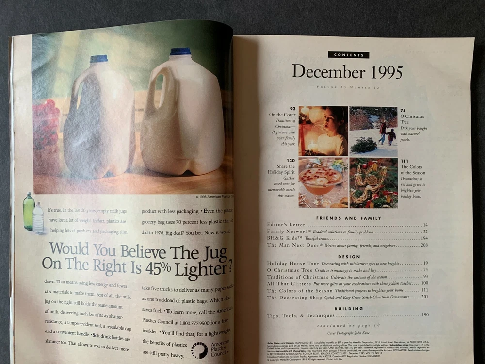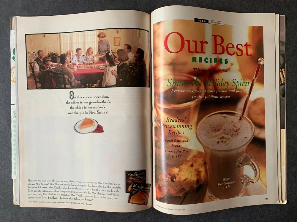 Collect a piece of history! Better Homes and Gardens Magazine December 1995 Features: The Season Of Joy, 20 Delights From Our Christmas Kitchen, Festive Touches For Your Home, O Christmas Tree, the Colors Of The Season, Share The Holiday Spirit Recipes: Spicy Date Salsa, Spinach Tart, Tuscan Almond Torte, Pistachio Pork Roast, Sweet Potato Swirls, Chocolate Brandy Cake, Rosemary Satin Dinner Rolls Ads: Ford, Kenmore, Armstrong, Pulsar, Chevrolet, Hershey's, Milk, M&M's, Kodak, Jell-O, Toyota, Lenox Good vintage condition. All pages are intact. Scuffs and discolorations. . Shipped with USPS. Will combine shipping, please send message with your order. Please visit our store to see more: https://www.ebay.com/str/historyinprogress