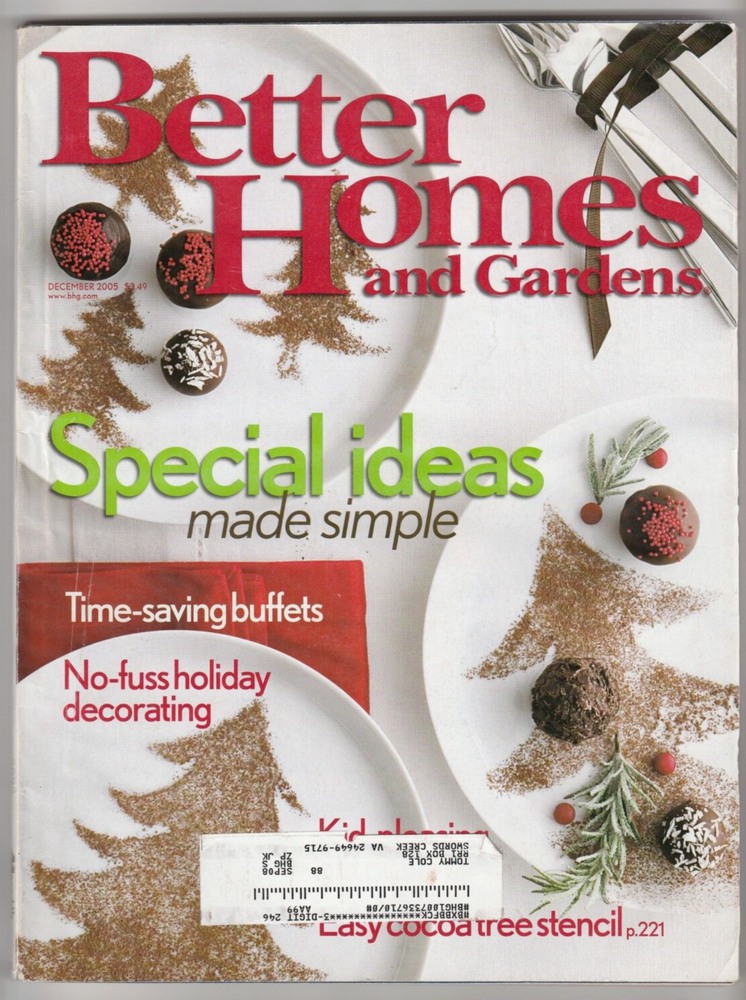 Better Homes & Gardens Magazine December 2005 286 pages Magazine is in good condition. As shown in front & back photo. Please Note: This item came from a smoking home. I do combine shipping on magazines & catalogs just add to cart and request a total before making payment.