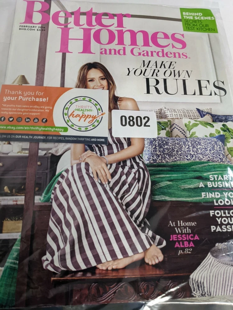 Better Homes & Gardens Magazine February 2016 At Home With Jessica Alba Thank you for viewing our listing. We try to keep prices competitive and low enough to move inventory. All profits from our eBay sales are going towards our daughter's education. We really appreciate you taking the time to view our listings and thank you for your purchases!