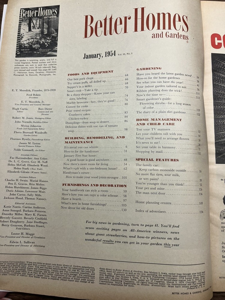 This vintage Better Homes & Gardens magazine from January 1954 is a must-have for anyone interested in mid-century modern decor. Filled with beautiful illustrations and articles on building, planting, and furnishing, this magazine is a great addition to any home library. The publication is in English and was published by Meredith Publishing Company in the United States. It is a monthly magazine and has contributors from the staff. The magazine is paid circulated and has a subscription option available. There is small wear on the bottom binding, but otherwise in very good condition.