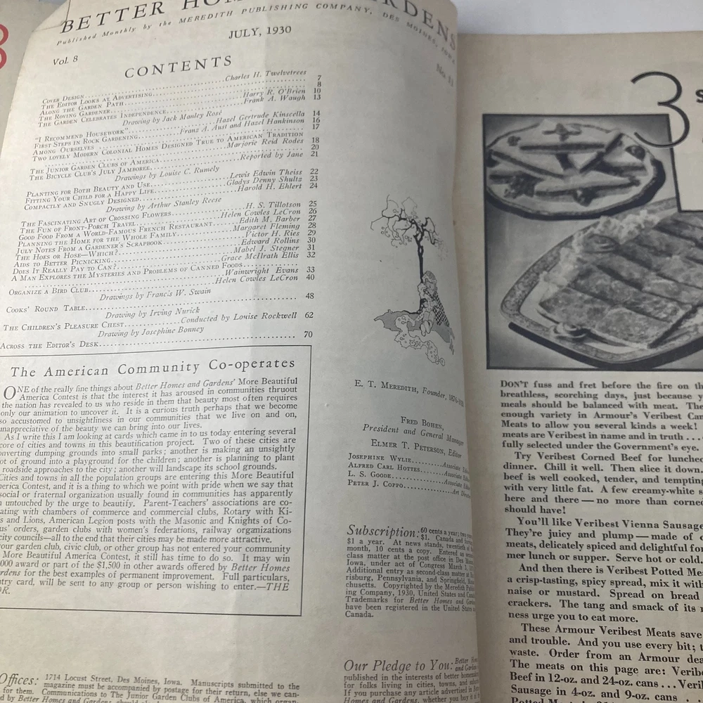 Better Homes & Gardens Magazine July 1930 Planting for Both Beauty and Use The item being pictured in this listing is the exactly the same item you will receive. Please check picture for condition purposes. We do offer combined shipping, just ask. All of our items come with a plastic protective covering.