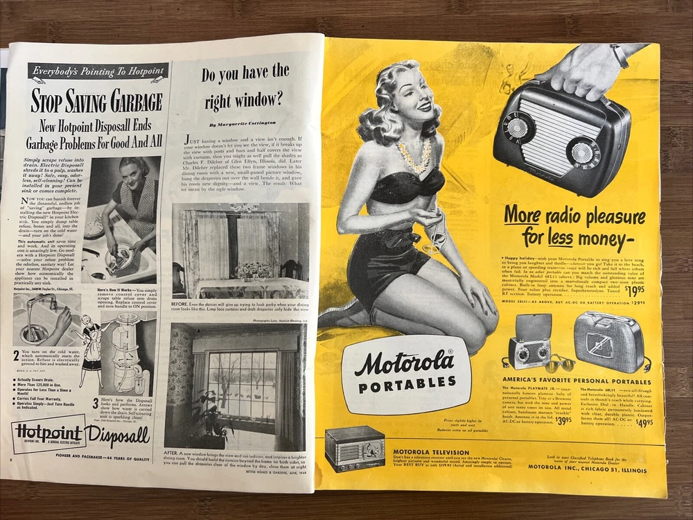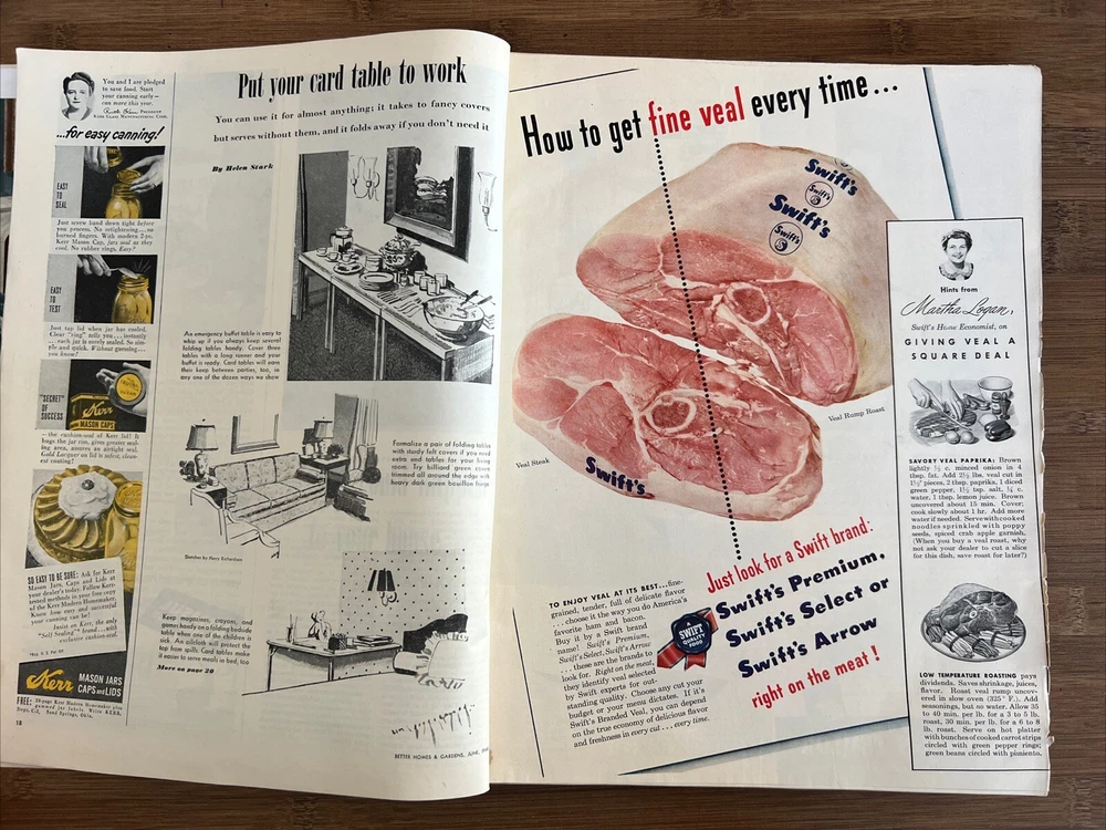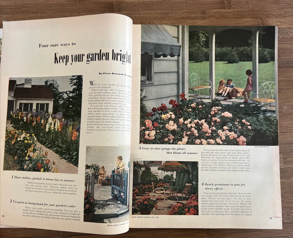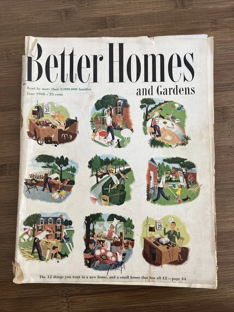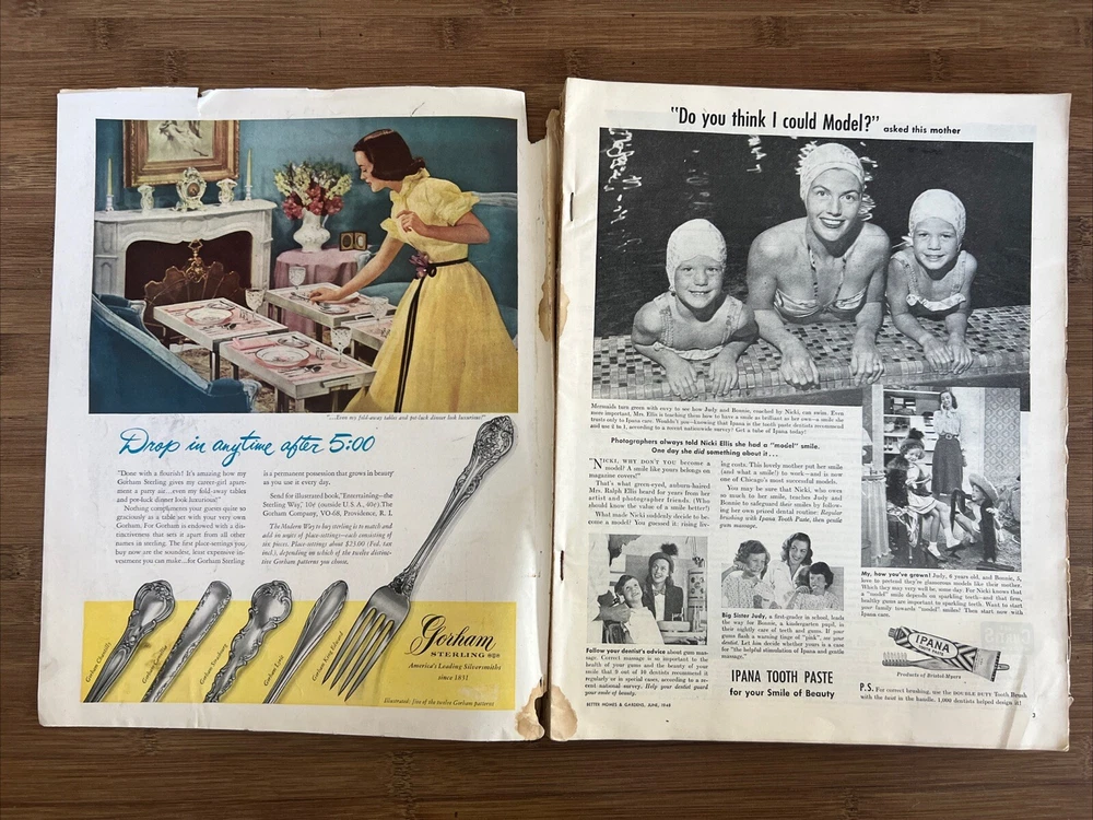 This vintage issue of Better Homes & Gardens magazine from June 1948 is a treasure trove of ideas for home decor, design, and recipes. The publication is filled with charming ads and articles that capture the essence of mid-century style. Overall acceptable vintage condition with some wear consistent with age and use. Some page discoloration and some bent pages. Please see pictures!