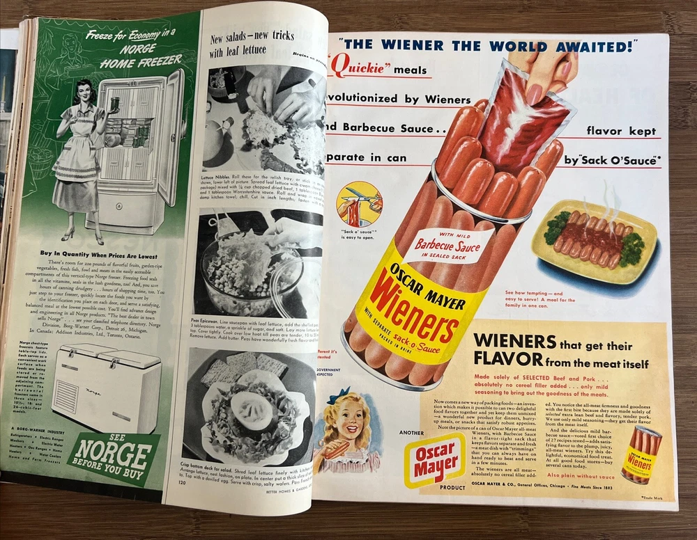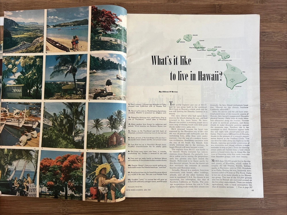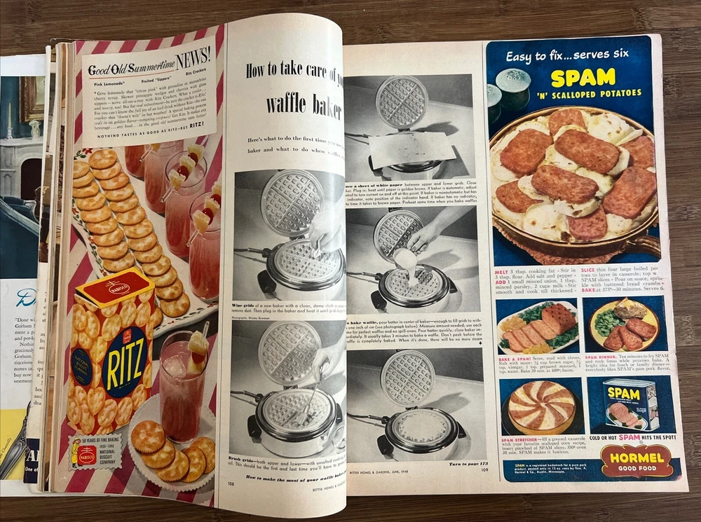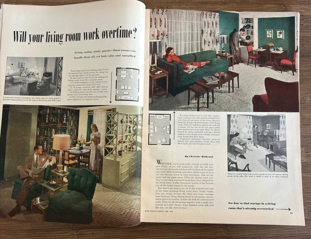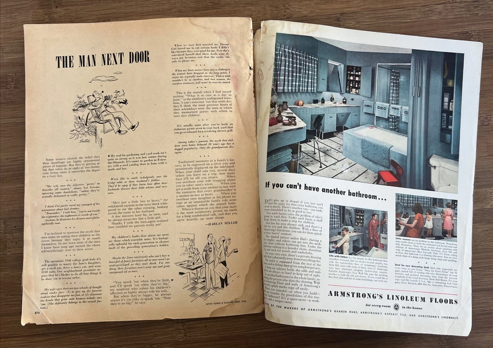 This vintage issue of Better Homes & Gardens magazine from June 1948 is a treasure trove of ideas for home decor, design, and recipes. The publication is filled with charming ads and articles that capture the essence of mid-century style. Overall acceptable vintage condition with some wear consistent with age and use. Some page discoloration and some bent pages. Please see pictures!