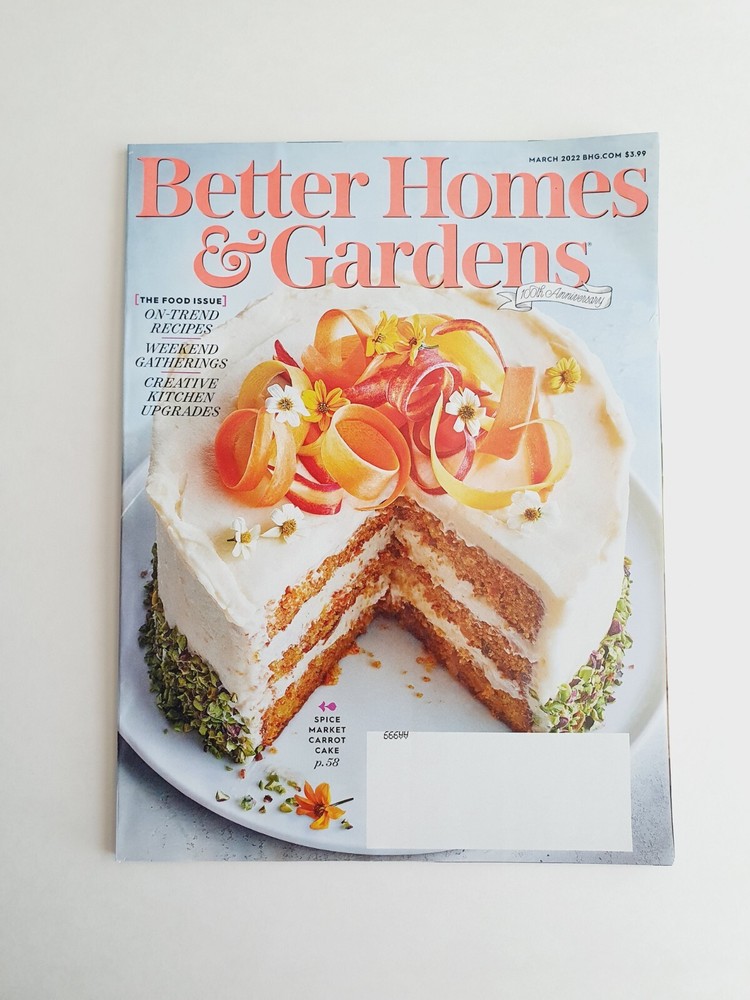 Better Homes & Gardens Magazine March, 2022 100th Anniversary! The Food Issue.