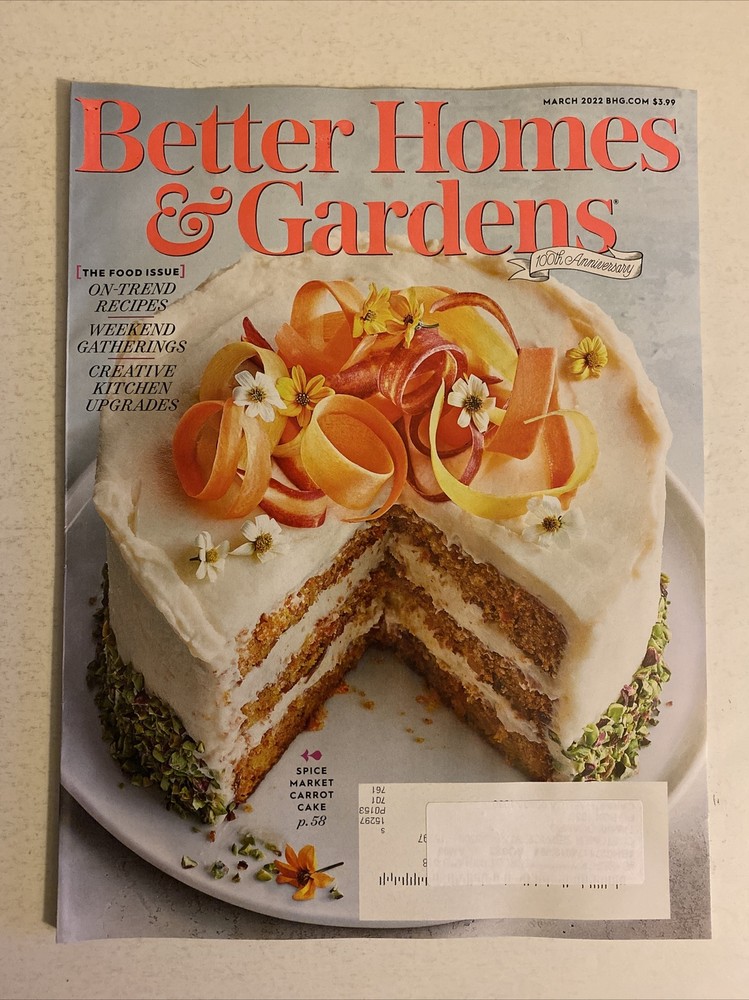 UNREAD SUBSCRIPTION ISSUE, WHITE LABEL PLACED ON IMPRINTED MAILING ADDRESS. MAGAZINE IN GREAT CONDITION.A25 Indulge yourself in the world of home and garden with the March 2022 issue of Better Homes & Gardens Magazine. This monthly publication is packed with inspiring articles on cooking, wine, and home decor. Celebrate the 100th anniversary of the magazine with this special edition, featuring 108 pages of mouth-watering recipes and practical tips for creating a beautiful home. Written in English and published in the United States, this magazine is a must-have for anyone interested in home and garden topics. With a focus on practical tips and creative ideas, it is the perfect addition to your coffee table. Get your copy of the March 2022 Better Homes & Gardens Magazine today and start transforming your home!