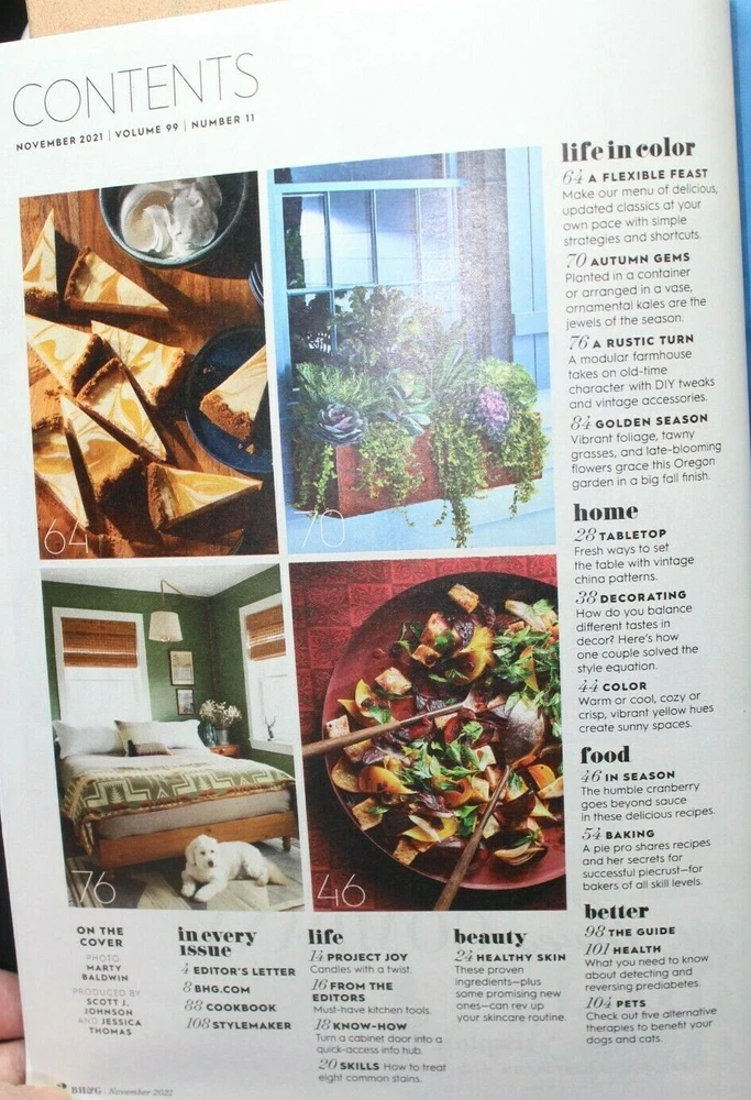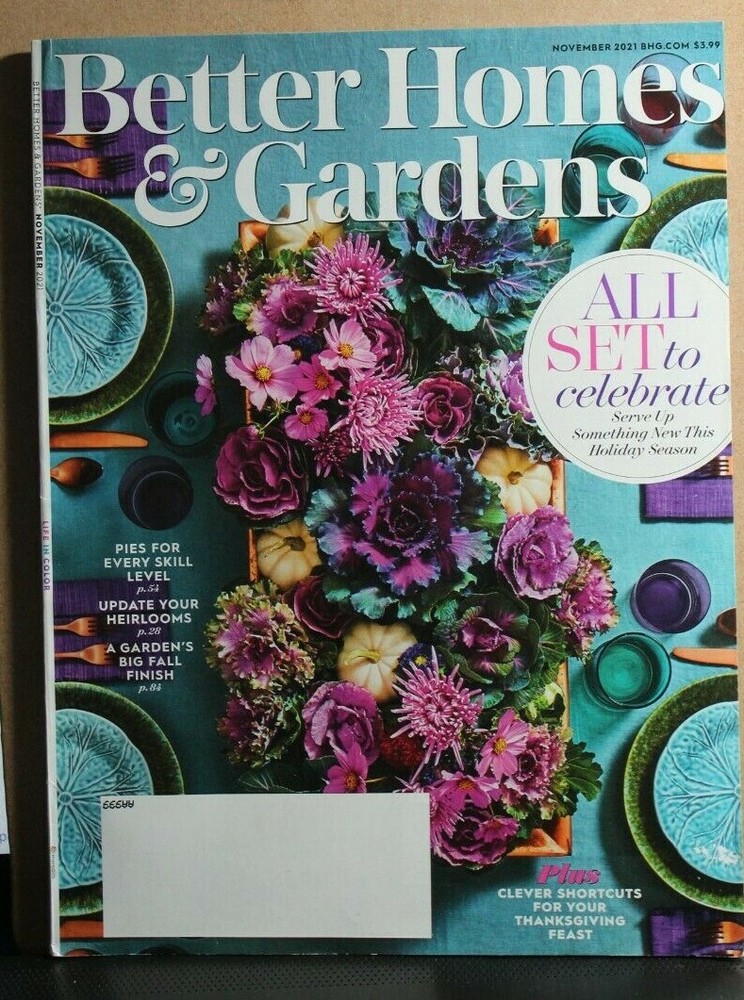 Better Homes and Gardens Magazine November, 2021 Pies for every skill level update your heirlooms clever shortcuts for thanksgiving feast 101 pages Thank you for viewing our site ... We appreciate you as a customer.. if you have any questions, please email and we will respond as soon as possible. We are a Pet free and smoke free home We only accept payment through PayPal. We ship the day following your payment clears in PayPal. We appreciate your business.