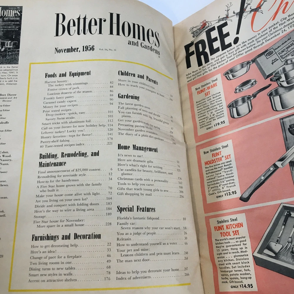 Better Homes & Gardens Magazine November 1956 Storage Space You Didn't Know Had Good condition. Newsstand / No Label. Minor wear on entire magazine. Comes with plastic protective covering.