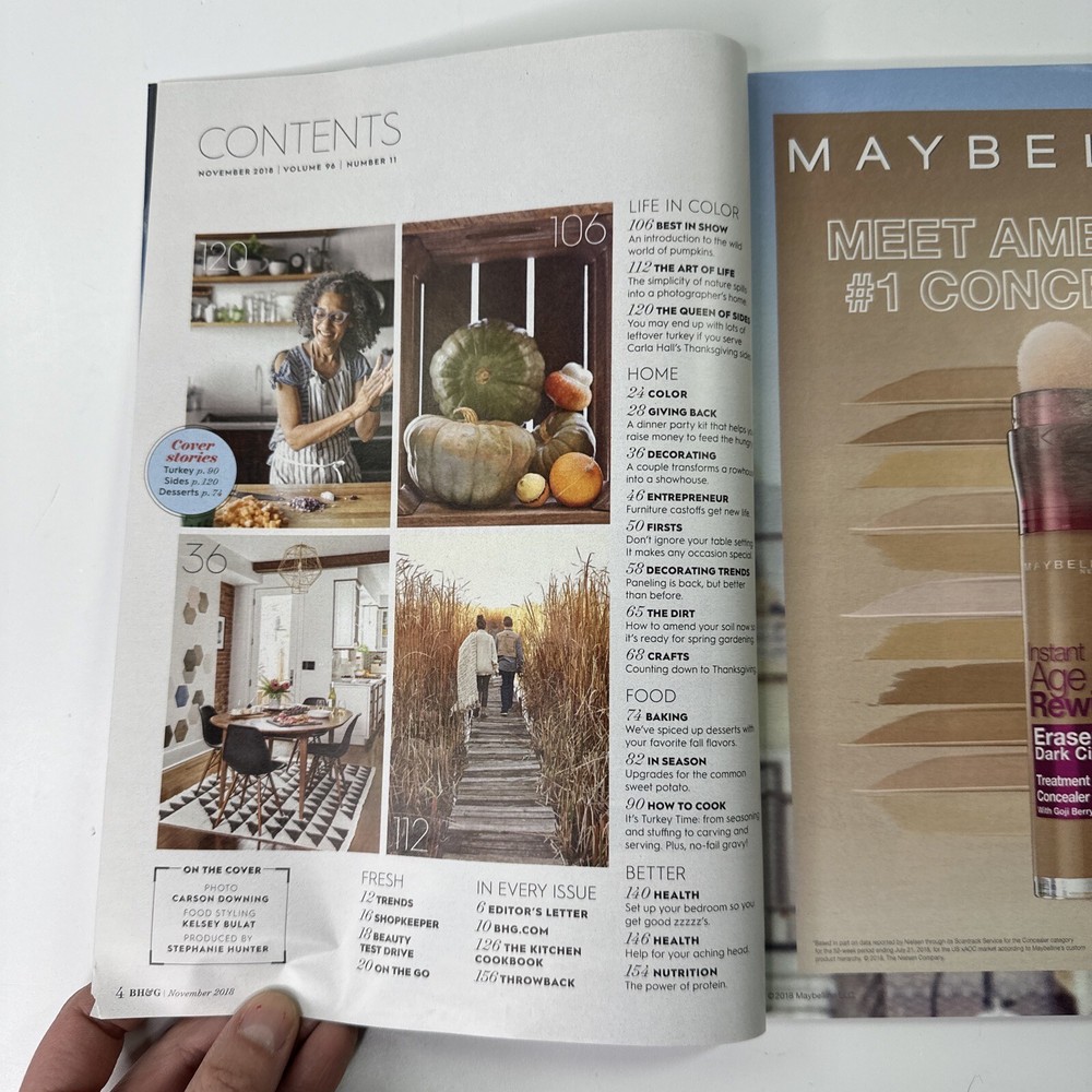 Better Homes & Gardens Magazine November 2018 Spice It Up Issue 156 Pages Pre-owned. No Address Label. Some shelf wear and smalls tears to the back page. No missing pages or writing Returns are not accepted for this item.