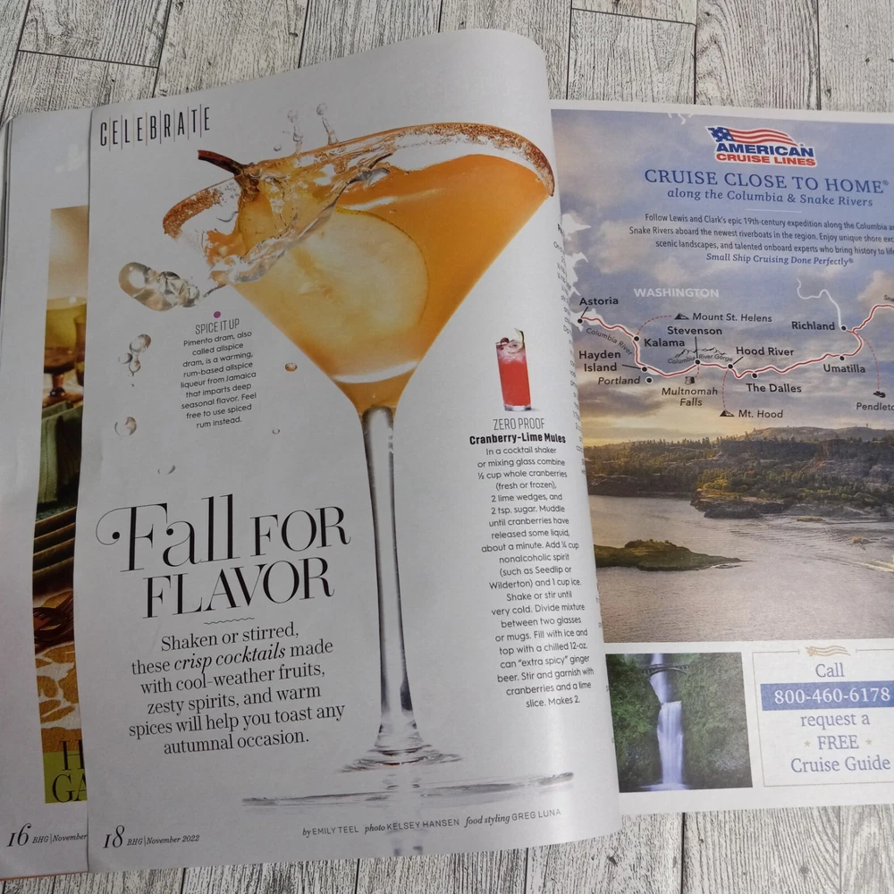 Better Homes & Gardens Magazine November, 2022 Back Issue.