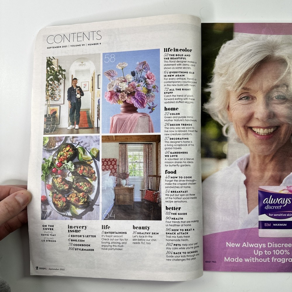 Better Homes & Gardens Magazine September 2021 The Trend Issue 108 Pages Pre-owned. Sticker over the Address Label. Some shelf wear. No missing pages, rips or writing Returns are not accepted for this item.
