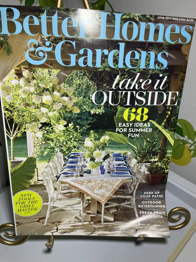 Discover the latest trends in outdoor living with Better Homes & Gardens Magazine's June 2017 issue. This monthly publication is a must-have for lovers of home and garden design. The featured articles in this issue are dedicated solely to "Take It Outside", where you can find tips and inspiration for creating your own beautiful outdoor oasis. From landscaping ideas to outdoor furniture trends, Better Homes & Gardens has got you covered. Explore the architecture and design of outdoor spaces with stunning illustrations and expert advice. This magazine is the perfect guide for anyone who wants to make the most out of their outdoor living area. Subscribe now and get ready to be inspired!