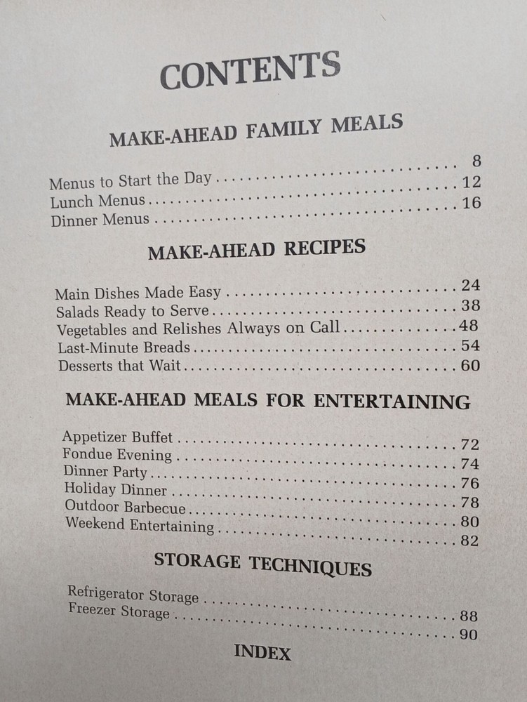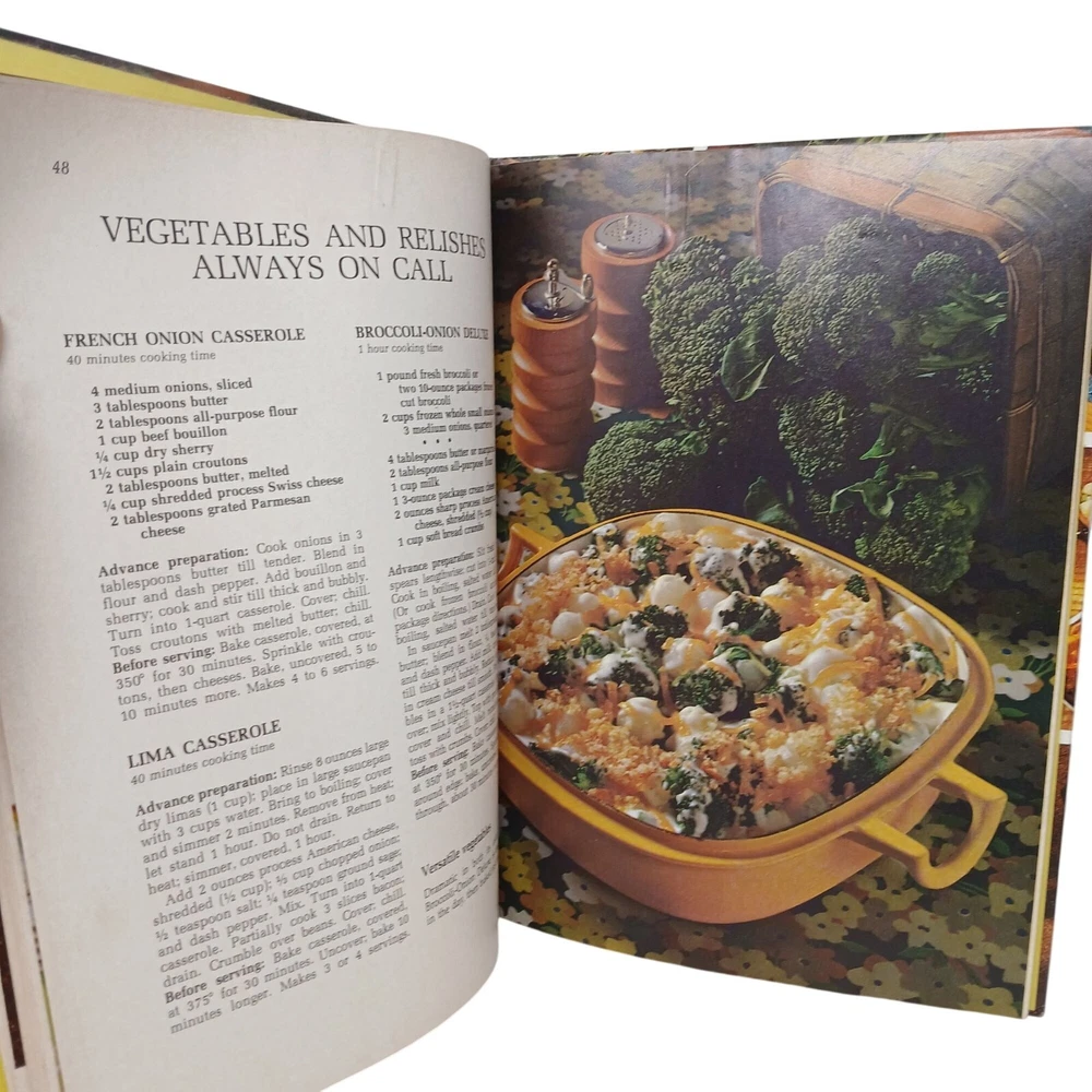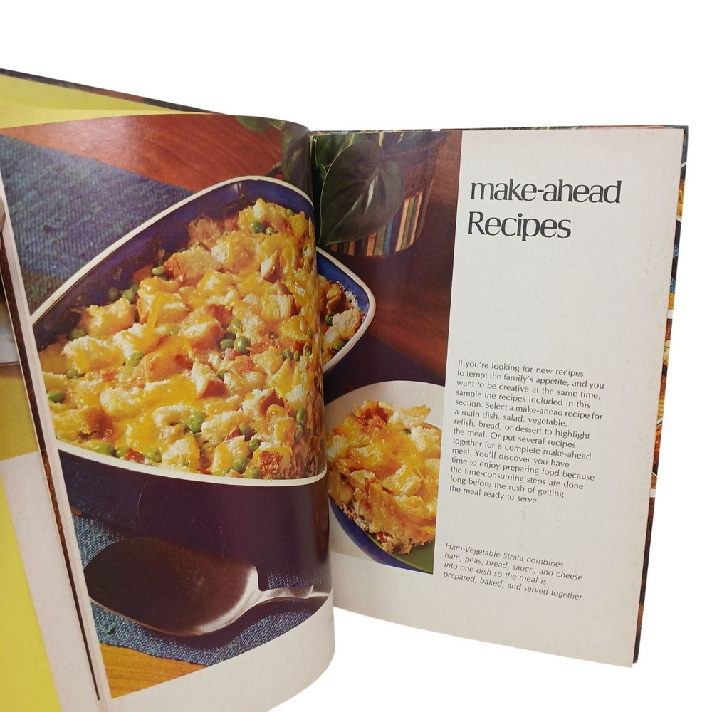 Discover the secrets to culinary time-travel with recipes that magically prepare themselves ahead of time. You'll finally have the time to enjoy your dinner party without juggling ladles and laughter. • Hardcover edition • Published in 1971 • First Edition, 5th Print 1974 • Filled with full-color photos • Contents cover family meals, entertaining, and storage techniques Clean book.