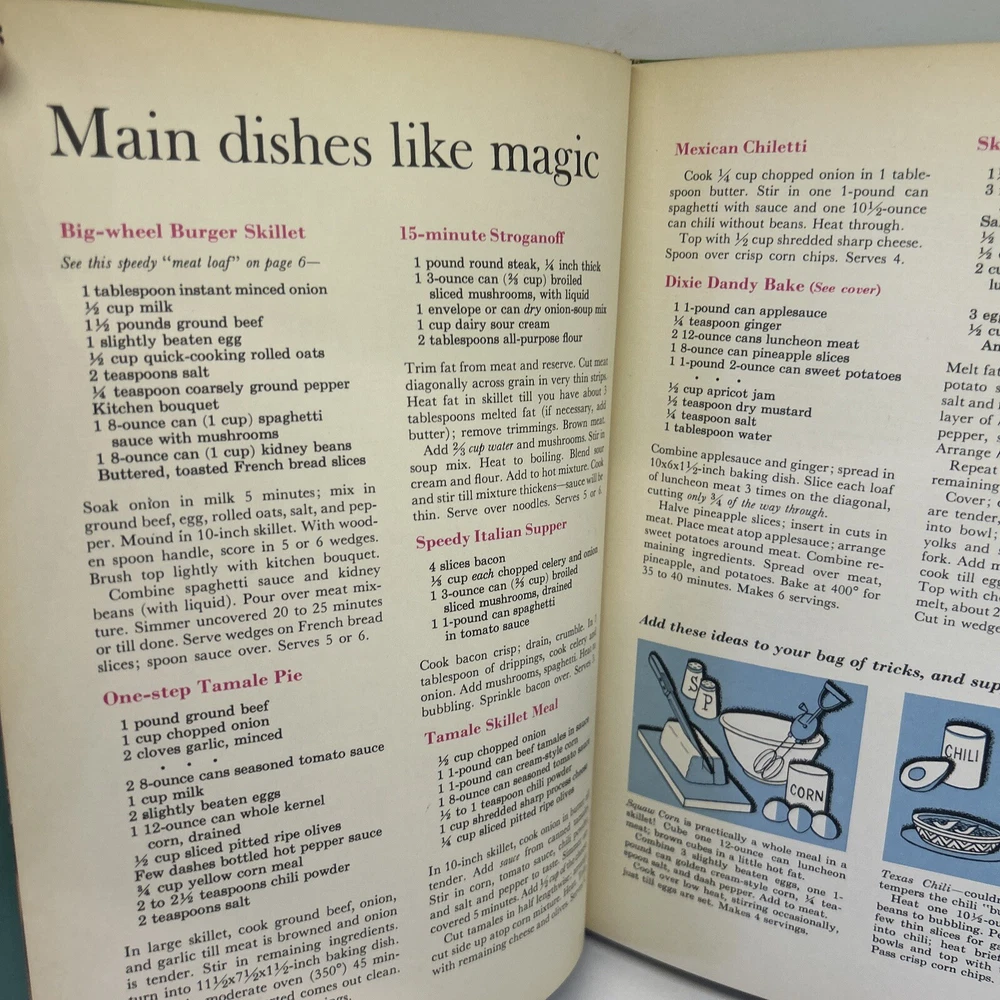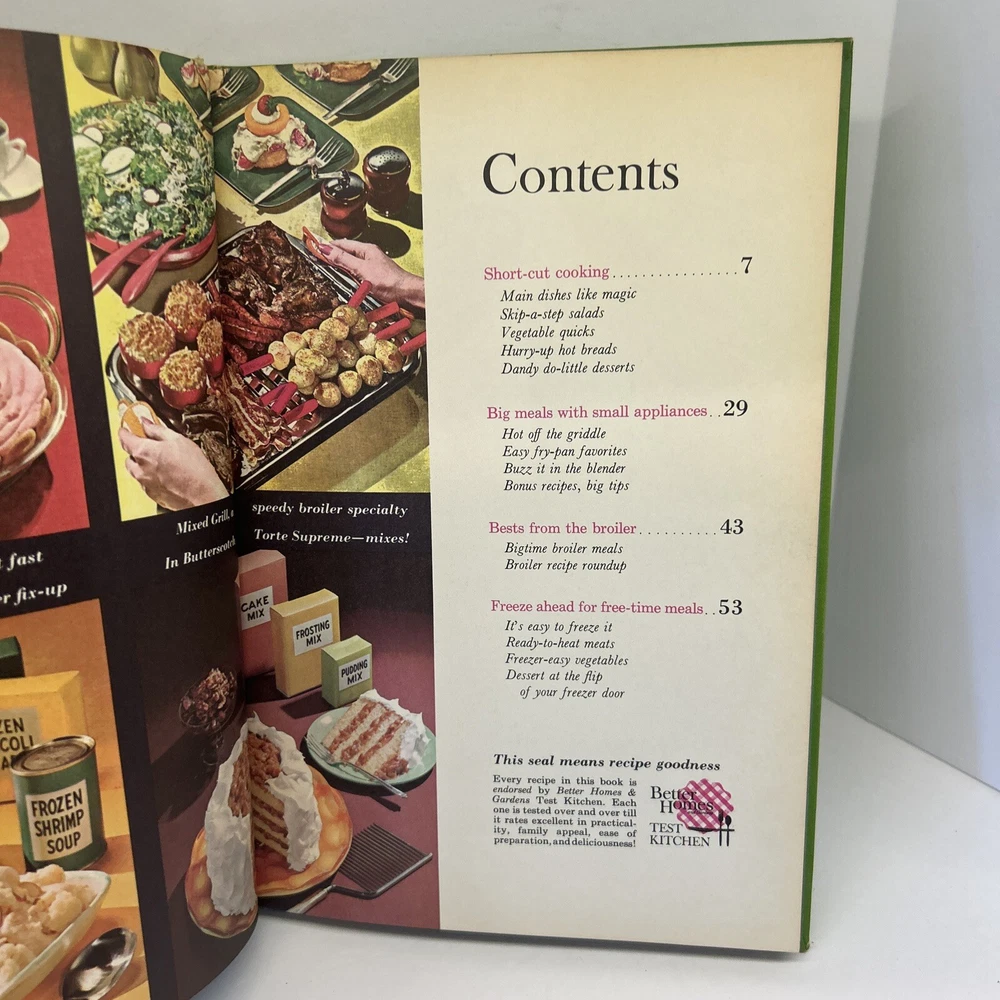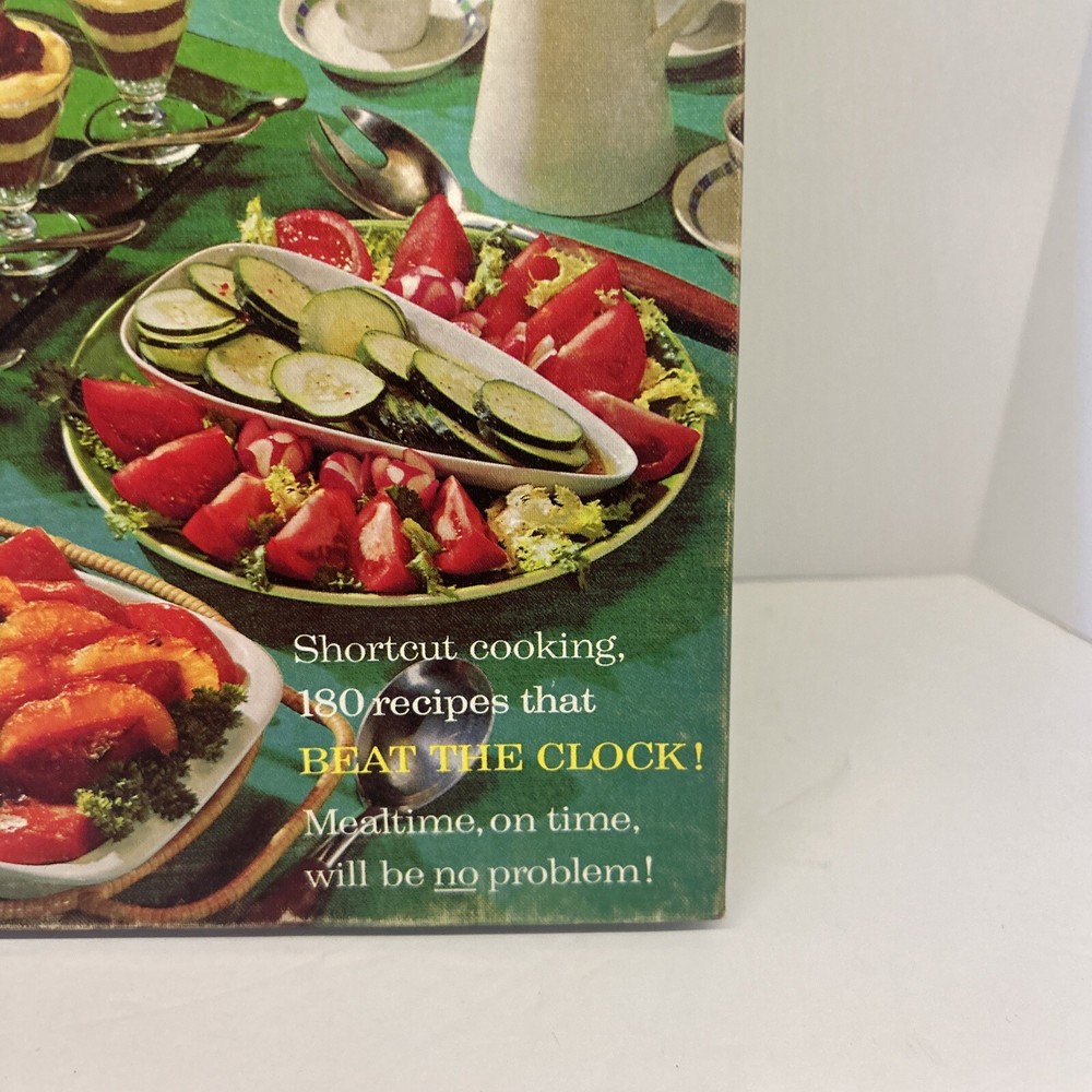 This vintage cookbook is vibrant and fun. The covers show obvious wear. The interior is in much better condition. This vintage cookbook from Better Homes & Gardens is a must-have for any food enthusiast. With its 1st print edition from 1963, this hardcover book is a true gem. The recipes are quick and easy, perfect for those who want to whip up delicious meals in minutes. The book covers a variety of topics, including appetizers, main dishes, and desserts. The language of the book is in English, making it accessible to a wide range of readers. Whether you're a seasoned cook or just starting out, this book is sure to inspire you in the kitchen.