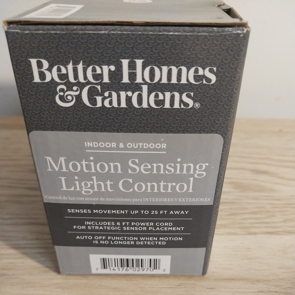 Enhance your home's security and convenience with the Better Homes & Gardens Motion Sensing Light Control, ideal for both indoor and outdoor use. This innovative device senses movement up to 25 feet away, offering a practical solution for lighting your living space efficiently. Powered by corded electric, this light control is designed to provide reliability and ease of use. Whether you're looking to brighten up your garden, porch, or interior spaces, this motion sensor ensures that your surroundings are lit precisely when you need it.