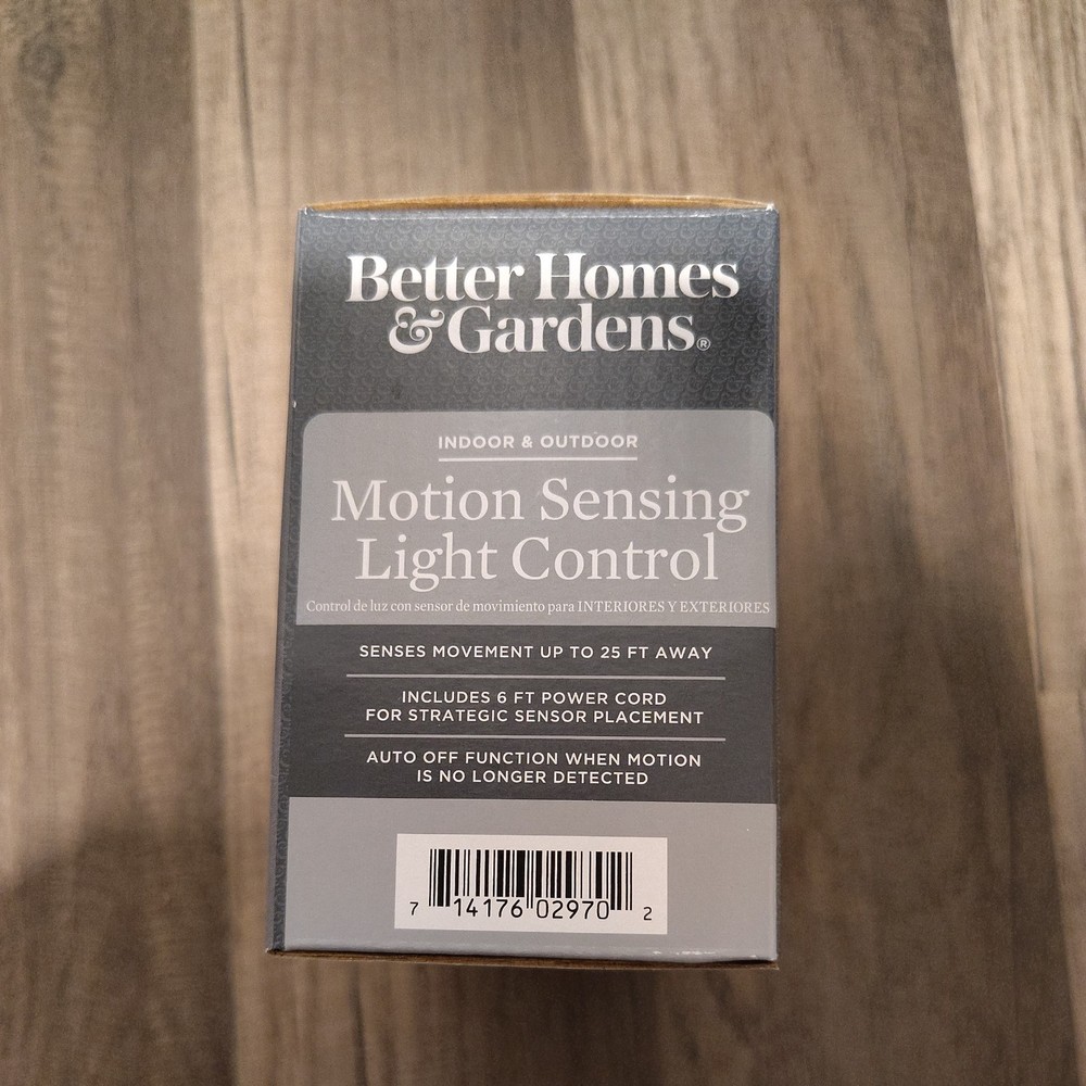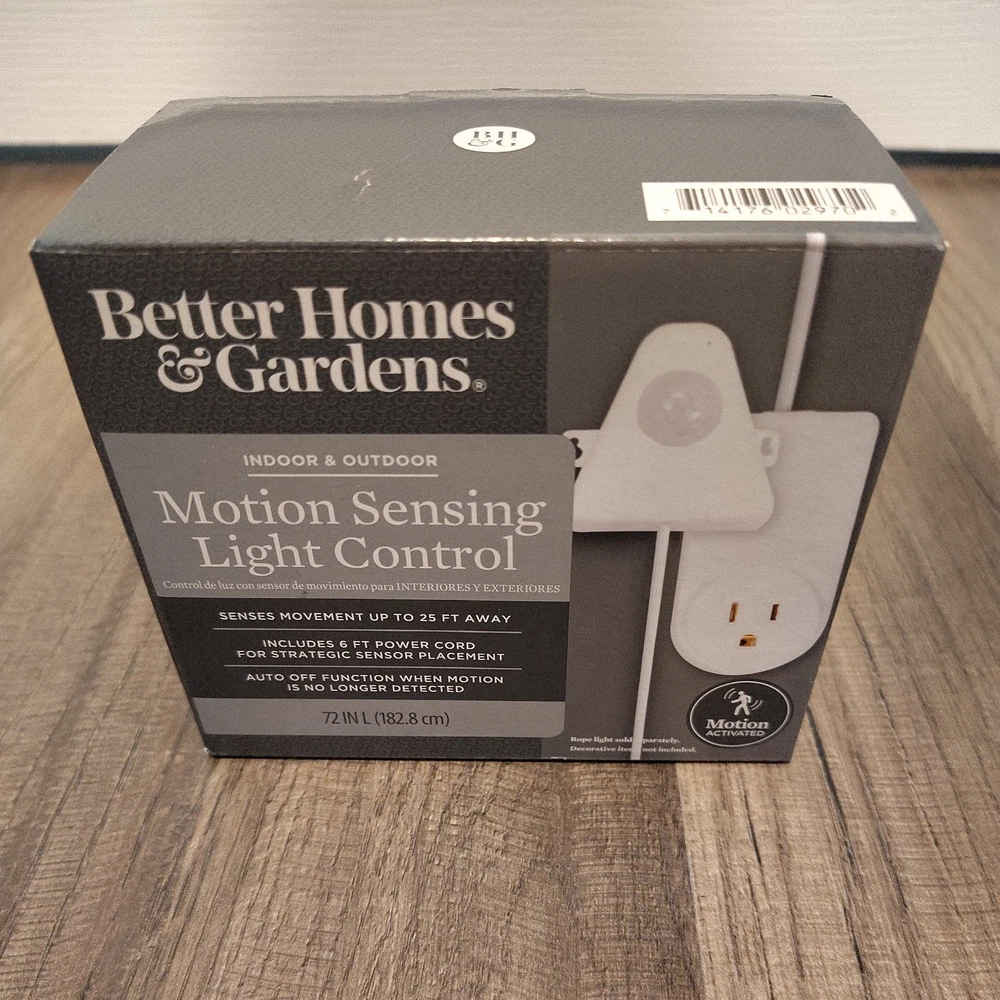 Enhance your home's convenience and safety with the Better Homes and Gardens Motion Sensing Light Control. Designed to work with both LED and incandescent lights, this versatile accessory brings smart lighting to any indoor or outdoor setting. Its white finish ensures a sleek and subtle addition to your lighting fixtures. The control unit features a reliable light sensor that activates your chosen lights automatically when motion is detected, providing ample illumination for any activity. It's easy to install and operates on corded electric power, making it a practical solution for your home or garden. Proudly manufactured in the United States, this product promises quality and performance.