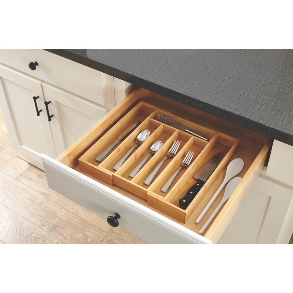 Our Better Homes & Gardens Natural Bamboo Expandable Silverware Organizer includes five main compartments for spoons, knives, forks, and serving utensils with two additional compartments for larger kitchen tools. It is made from 100% bamboo. This drawer organizer is durable and water-resistant so it will withstand years of use. And it is waterproof, insect resistance, which can keep your families from mildew and harmful gas. Bamboo products are easy to clean and can be effectively avoided the reproduction free from mold. The warm, neutral wood coloring will blend elegantly with your decor and it's perfectly sized to fit into most standard sized drawers ranging from 10.04" – 15.35" in width. When we have a lot of things to keep attention at while cooking - it’s important to have everything we need in one place. To make sure all-time favorite things are in plain sight, get yourself a kitchen drawer organizer. Better Homes & Gardens Natural Bamboo Expandable Cutlery Tray Size: 13.98 x 10.04-15.35 x 1.97 inch Multipurpose Use: This drawer organizer can be used to store small items such as cutlery, jewelry, stationery and tools. It can be used in kitchen, living room, bedroom, and utility room etc. It is suitable for application of multiple items in multiple occasions. Expandable and Adjustable Utensil Organizer: Designed with 5-7 compartments, the silverware organizer can save space while accommodating multiple items, which is expandable from 10.04 inches to 15.35 inches wide with smooth sliding. Perfect Premium Bamboo: Bamboo cutlery tray looks tidy and elegant. Unlike other manufacturers, our bamboo utensil holder organizers are harvested at full maturity to increase strength. For you, that means this organizer might just last longer than your drawer. Practical and Perfect Storage: This bamboo organizer can store confusing small items by compartments. Easy to pick up items, it can save time looking for items such as spoons and knifes, pens and rulers, necklace and watches. Sturdy Construction and Easy Maintenance: This kitchen utensils drawer organizer is sturdy enough to store in place. And this bamboo organizer can be wipe quickly with warm water and be simply wiped down with a damp cloth.