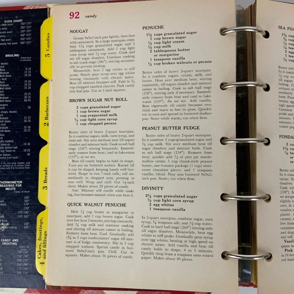 Better Homes & Gardens New Cook Book 1969 Ring Binder 2nd Printing Hardcover USA This vintage edition includes 400 pages of recipes, tips, and meal-planning guides in a durable ring-binder format with iconic red gingham design. • Ring-bound for easy recipe access • Durable hardcover with iconic gingham pattern • 400 pages of diverse recipes and tips • Published by Meredith Press, USA Good pre-owned condition with minor shelf wear on cover. Pages are unmarked, but several pages in the back of the book have moisture staining. Tabs are all intact and in good condition. Book pictured is actual copy you will receive.
