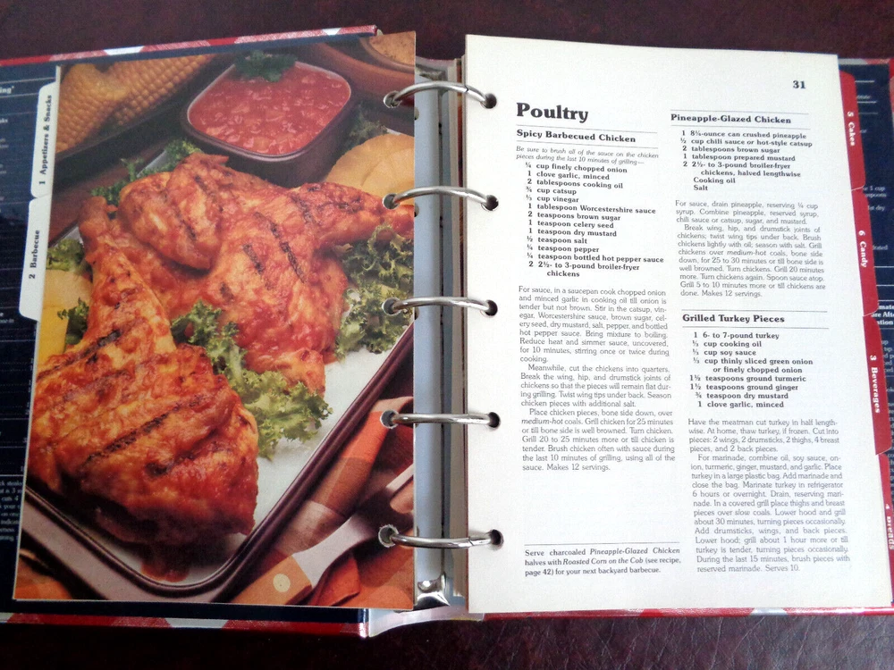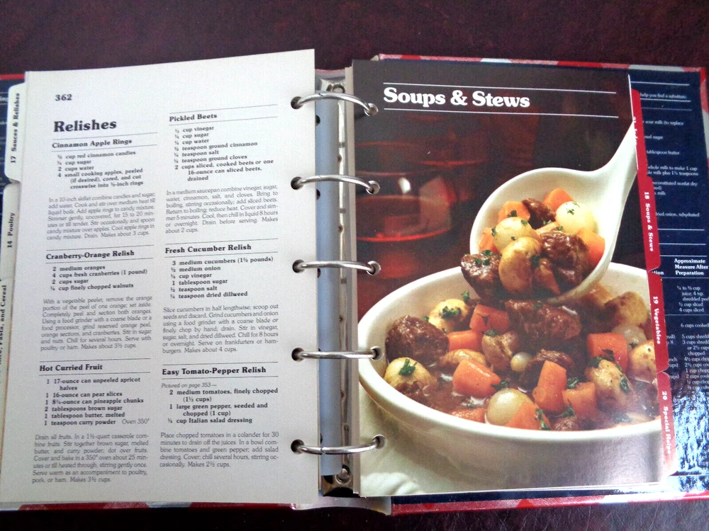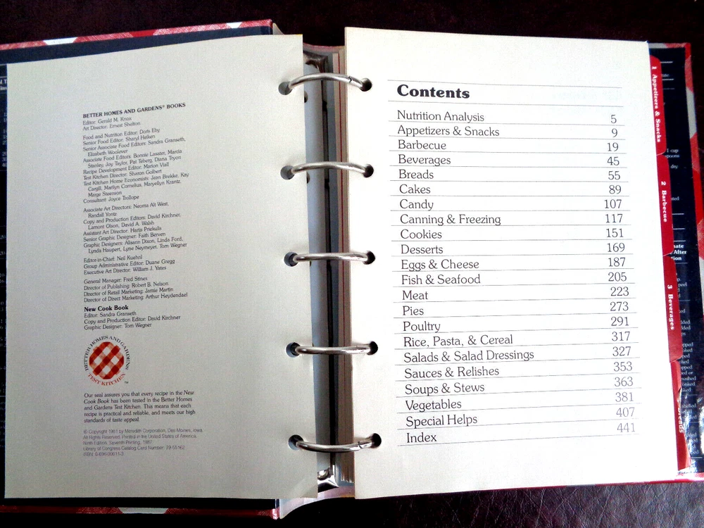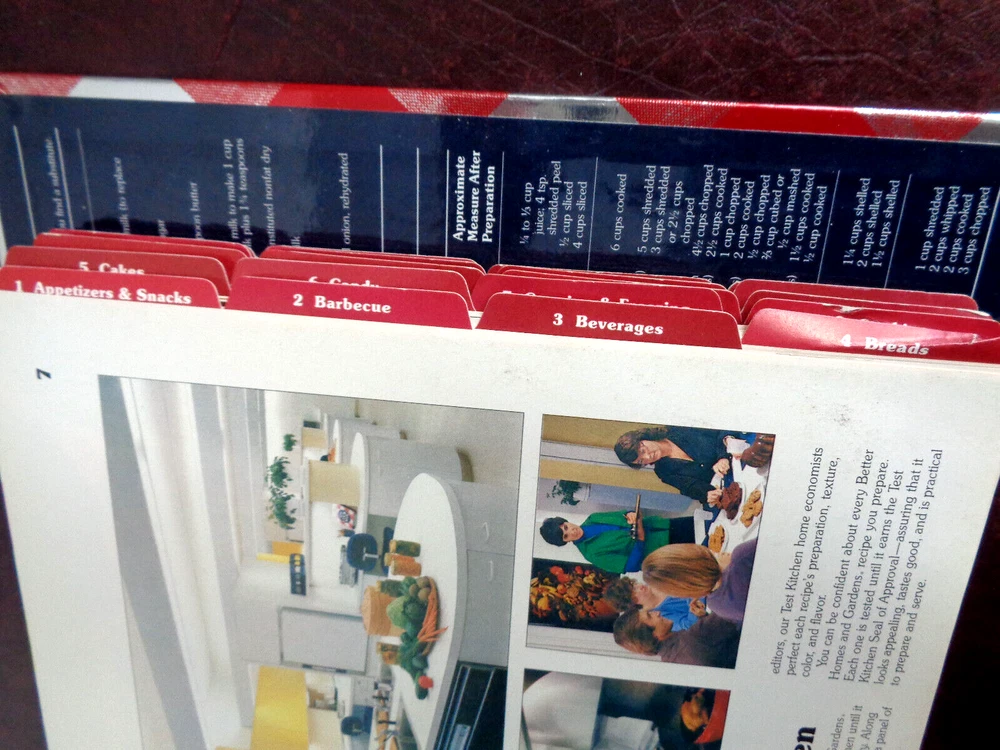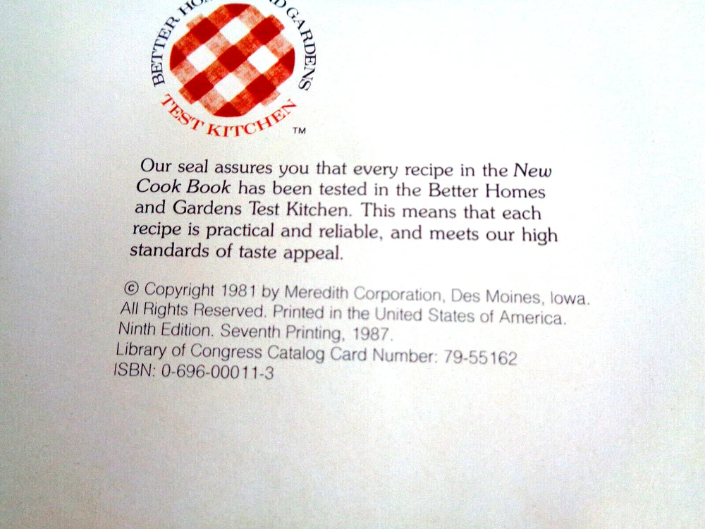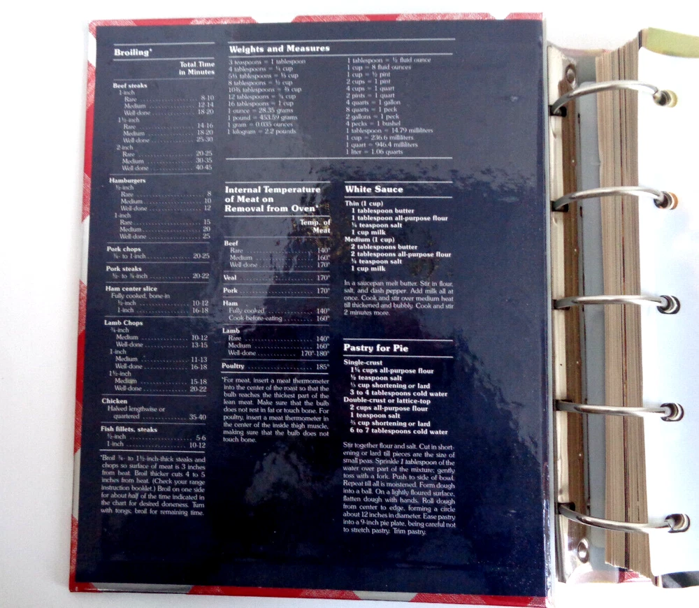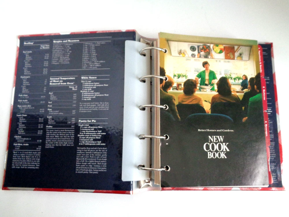 Better Homes and Gardens New Cook Book 5-Ring Binder 9th Edition, 1987 25th Million Commemorative Cover. Previously owned. In very, very good condition. No ripped, torn, creased, highlighted or written-on pages. The "Breads" tab and the "Cookies" tab are creased and damaged slightly. Please see all photos. This "Better Homes and Gardens New Cook Book" c.1981, 9th edition, 7th printing 1987 is housed in a five-ring hardcover binder with the 25th Million Commemorative Cover and packed with 465 pages of mouth-watering recipes crafted by the Better Homes & Gardens Test Kitchen Staff. In cludes the following: 1,251 Test Kitchen-tested recipes including exciting new dishes, plus many old favorites. Over 80 illustrated cooking tips, and a total of 246 illustrations. Meal planning and nutrition basics, along with nutrition analysis for every recipe. 21 tabbed chapter dividers. Time-saving ideas, shopping tips, and storage information. Canning and freezing instructions. Rugged wipe-clean cover resists stains, ring-bound book lies flat. The inside front and back covers show the most commonly used charts and recipes as shown below: Broiling - Type of Food and Time, Weights and Measures, Internal Temperature of Meat on Removal from Oven, White Sauce Recipe, Pastry for Pie, Emergency Substitutions, Ingredient Equivalents. The cookbook measures 10" tall x 8" long x 2" wide, and weighs 2 lbs 11 0z. Designed for the avid cook, it spans across various topics and genres within the cooking realm, ensuring a diverse range of culinary creations to explore. Whether you're a food enthusiast or a seasoned chef, this cookbook is a treasure trove of recipes and tips waiting to be discovered. Comes from a smoke free environment. Thanks for stopping by! We welcome any questions, and be sure to checkout our eBay Store for other interesting items! Save on shipping when you combine orders. Add orders to cart, click "view cart" then "request for totals" at the top of your shopping cart. An invoice will be sent with revised shipping. If you are not happy with a purchase, please do not rush to give negative feedback. Let us know, we will do our best to make it right. Thanks for shopping with us!