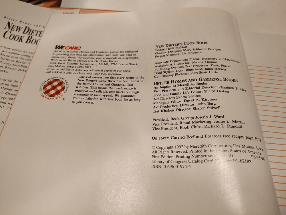 Better Homes & Gardens New Dieter's Cookbook 1992 Low Calorie Home Cooking. Condition is Good. Shipped with USPS Media Mail.