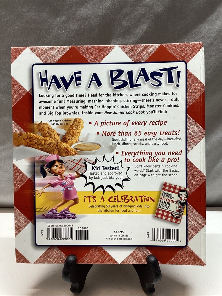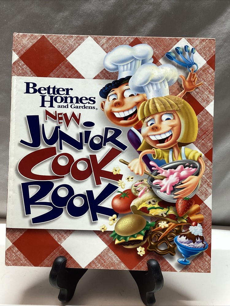 The "Better Homes and Gardens New Junior Cookbook" is part of the Better Homes and Gardens Cooking Series, designed for ages 9-12. This hardcover-spiral book, published in 2004, features revised recipes for kids, illustrated by Jan Miller. With 128 pages of American regional cuisine, it offers methods and general cooking tips in English. The book measures 10.5 x 9.1 x 0.9 inches and is a practical guide for young aspiring chefs. See pictures for condition. B33