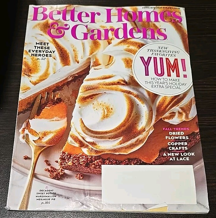 Delve into the spirit of the season with the Better Homes & Gardens November 2020 issue, filled with Thanksgiving favorites that promise to add a touch of warmth and creativity to your celebrations. This edition, dedicated to holiday inspiration, offers a wealth of ideas for crafting a festive and inviting atmosphere in your home. Whether you're looking for seasonal decor tips, traditional recipes, or exclusive guidance on creating a memorable holiday experience, this magazine serves as a comprehensive resource for homeowners and garden enthusiasts alike. Its rich content spans various aspects of the Thanksgiving season, making it a valuable addition to any collector's library or a thoughtful gift for the home decor and holiday planning enthusiast.
