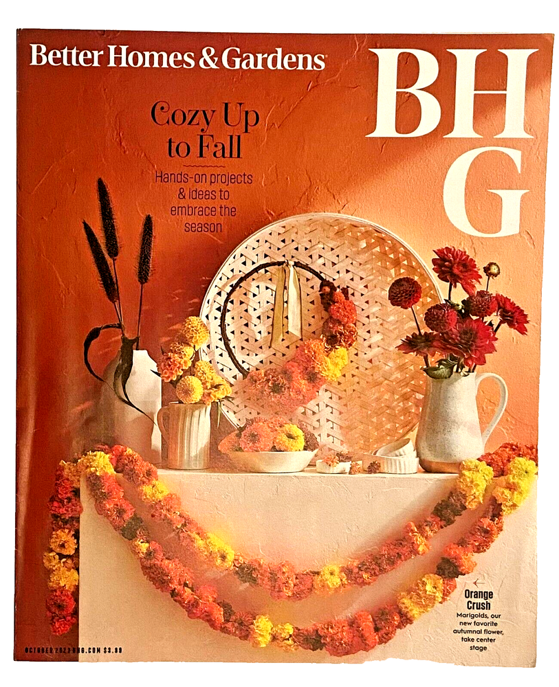 Description: A preowned copy of the Better Homes & Gardens magazine, October 2023 Issue. Volume 101, number 10, featuring all things FALL. Along with inspiring articles on topics such as home decor, gardening, and recipes. The magazine is in English and is published by B & G, known for their high-quality publications with beautiful illustrations. PREOWNED SUBSCRIPTION MAGAZINE, NO IMPRINTED MAILING ADDRESS. MAGAZINE IN VERY GOOD CONDITION. SLIGHT POSTAL WEAR CAN BE EXPECTED. SHIPPING IS FREE MEDIA MAIL, TEXAS RESIDENT PAY 8.25 PERCENT TAX. CANADA 10.00 , INTERNATIONAL 14.00. WE SHIP EVERY WEEKDAY.