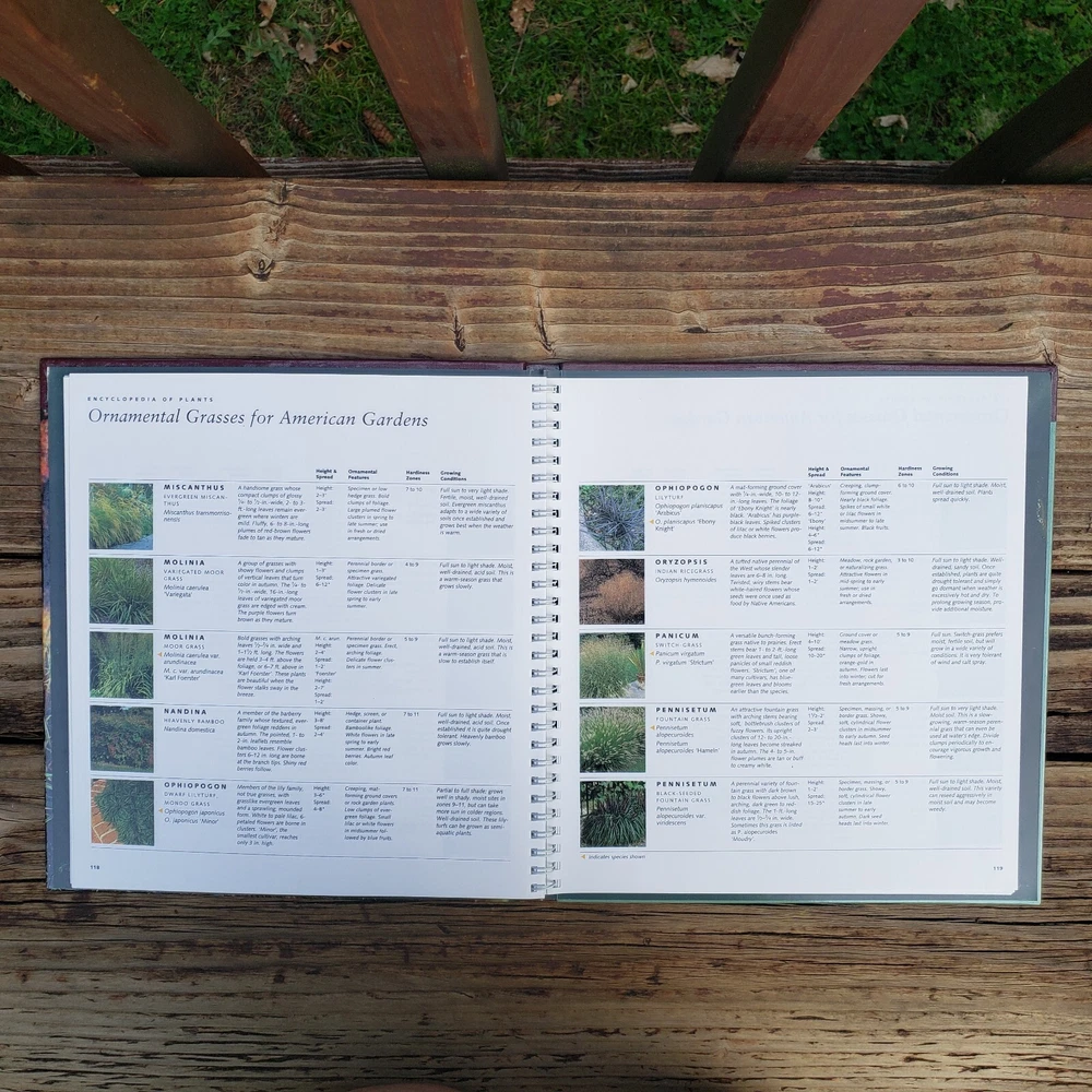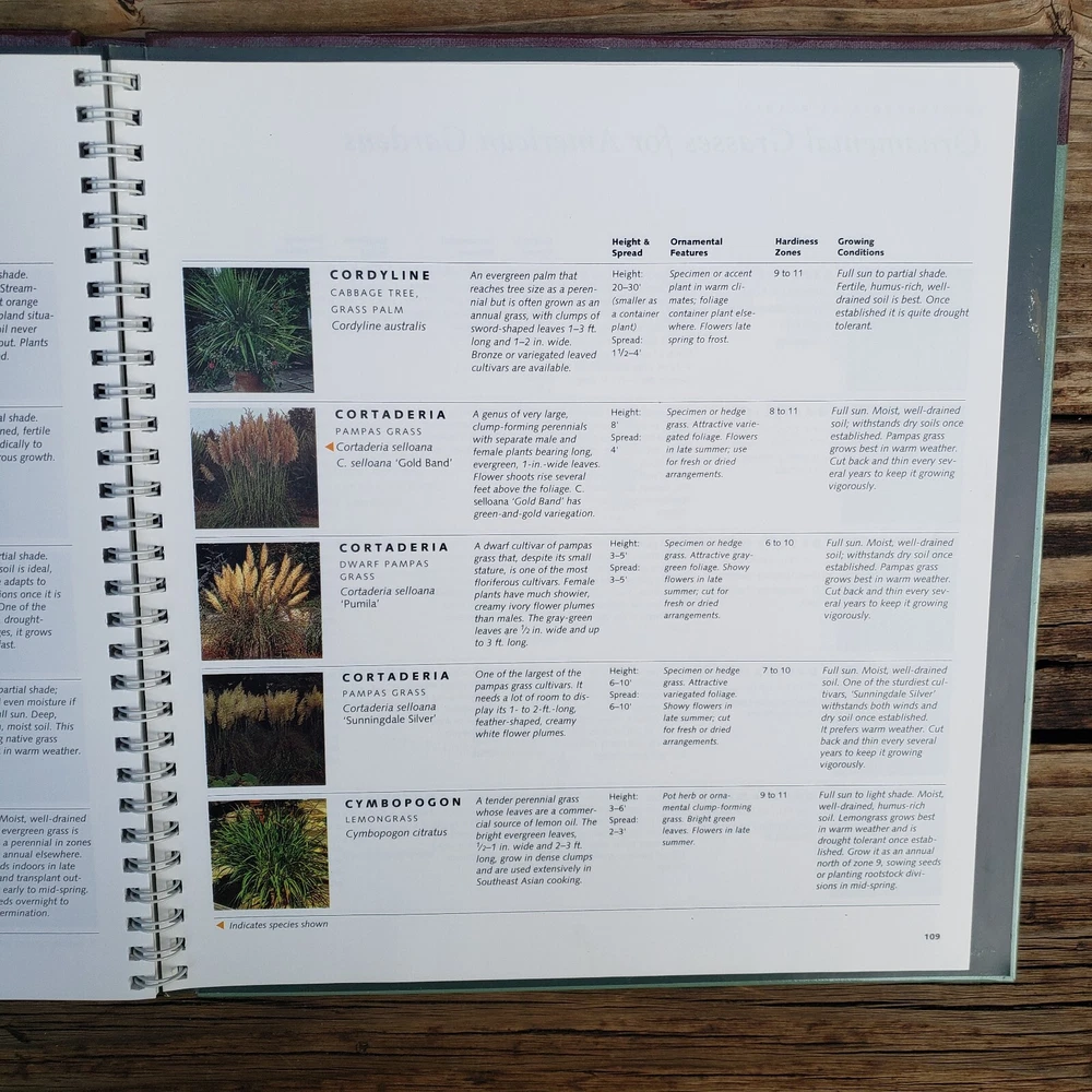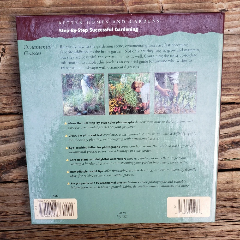 Better Homes & Gardens Ornamental Grass - Hardcover Book. This is a Step-By Step Successful Gardening Book from Better Homes and Gardens on Ornamental Grass. Hardcover with Spiral Binding inside. Has lots and lots of great information on all the different kinds of ornamental grass! Please see picture with Table Of Contents! Book is in good shape but the front and back covers does some show wear and tear from reading or storage but nothing too damaging (lines and scratches and corners are a tad raw). Book is in good used shape!