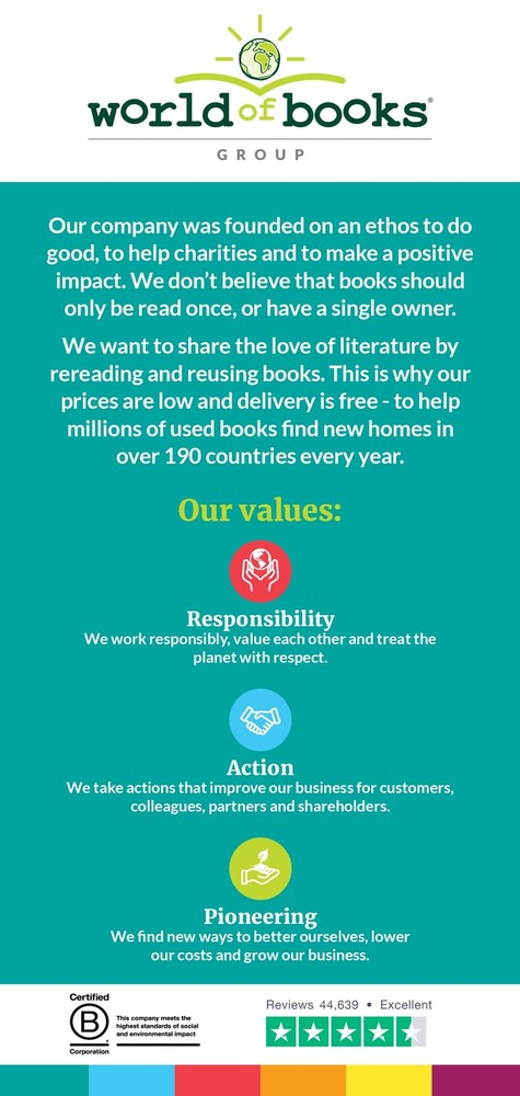 Positive experience but could be better. Item description was accurate but, it was shipped in a simple bag with no carton or any protection. The bag was broken in places and the USPS bent the book like it was a newspaper and ruined what was an excellent looking book. That was clearly the USPS fault but a "Do Not Bend" or carton would help next time. Otherwise accurate description, value, condition and Fast shipping. I'm a returning customer and will keep buying from World of Books