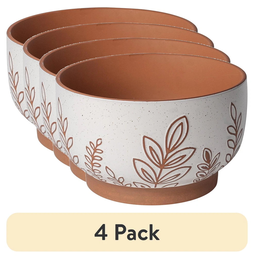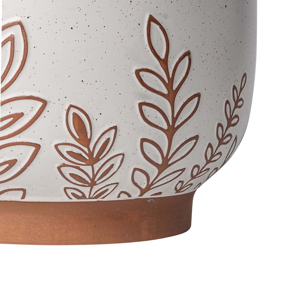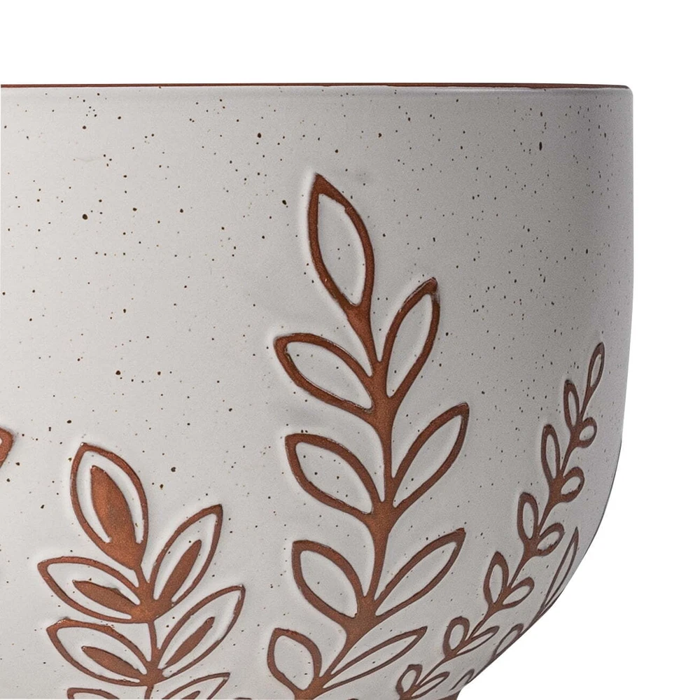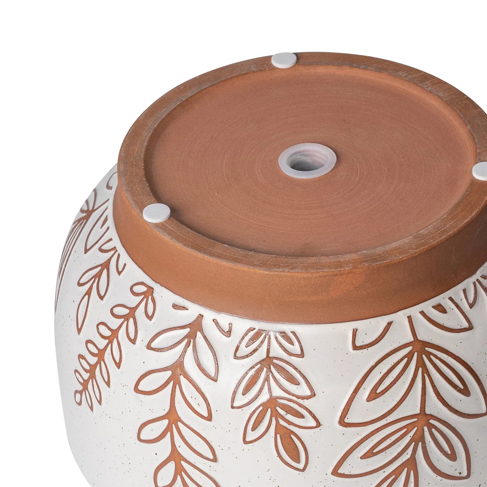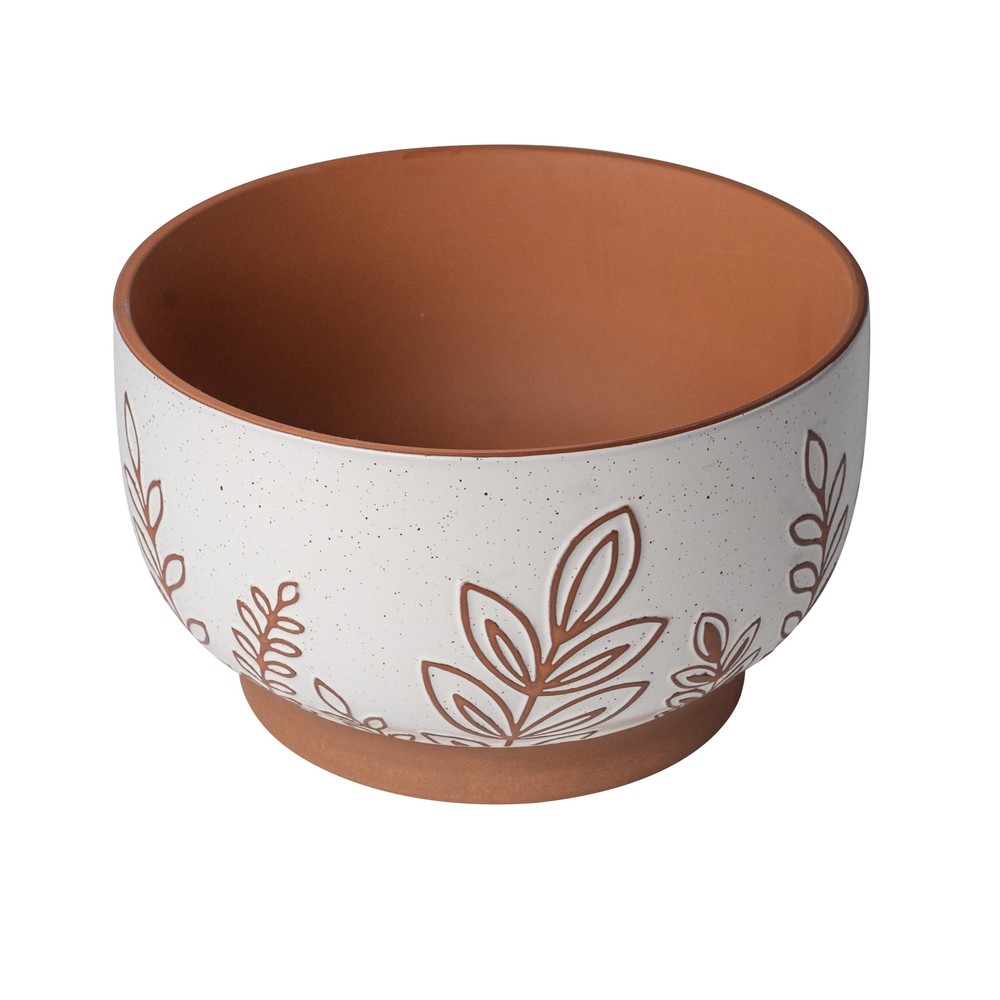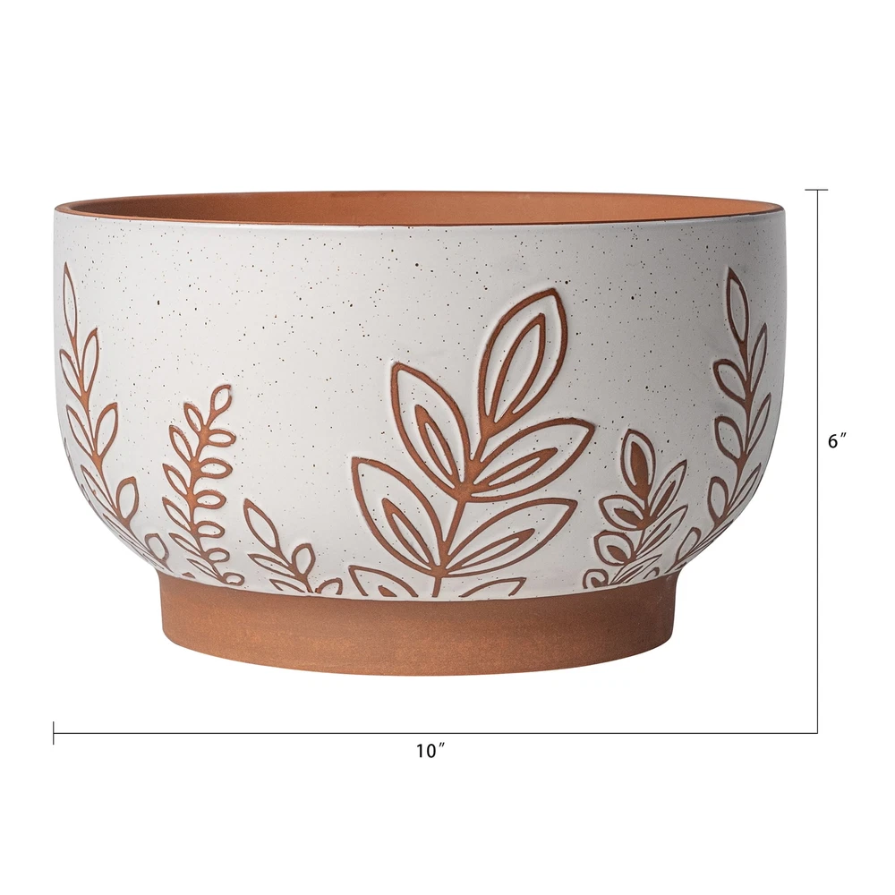 The Better Homes & Gardens 10”D x 6”H Round Terracotta Planter, Botanical is a great way to integrate nature on coffee tables, patios, and anywhere else plants can thrive. A weather-resistant, terracotta construction is ideal for any indoor or outdoor setting. The botanical finish matches natural surroundings while the broad, footed design prevents tipping. The planter includes a drainage plug that allows for easy watering. From office lobbies and living rooms to balconies and backyards, the all-season Better Homes & Gardens 10”D x 6”H Round Terracotta Planter is the perfect way to display herbs, succulents, and other houseplants. Weather-resistant, terracotta construction allows for indoor and outdoor use Broad, footed design elevates plants and prevents tipping Perfect for succulents, flowers, and other small houseplants Botanical pattern fits naturally in a variety of household settings Includes drainage plug for easy watering Dimensions: 10”D x 6”H Capacity: Holds plants up to 1.25Gal Product Weight:5.72lbs Color: White Material: Ceramic Model# BHS369523974007 Imported