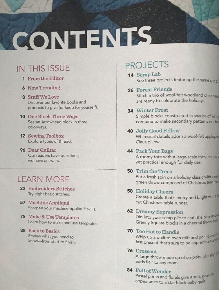 This issue is packed with gorgeous quilt designs and easy-to-follow patterns—perfect for cozy winter crafting! The projects are creative and inspiring, making it a must-have for quilting enthusiasts. Great quality and beautiful photography too!