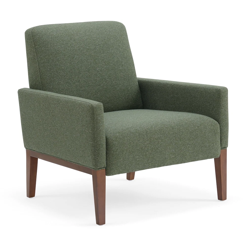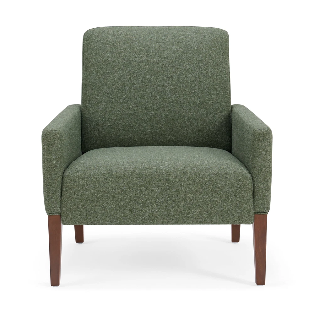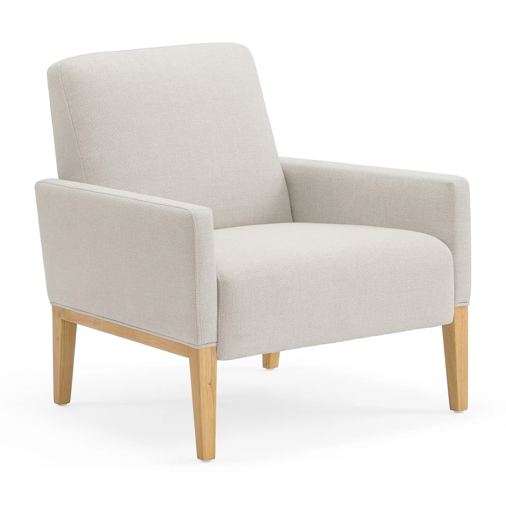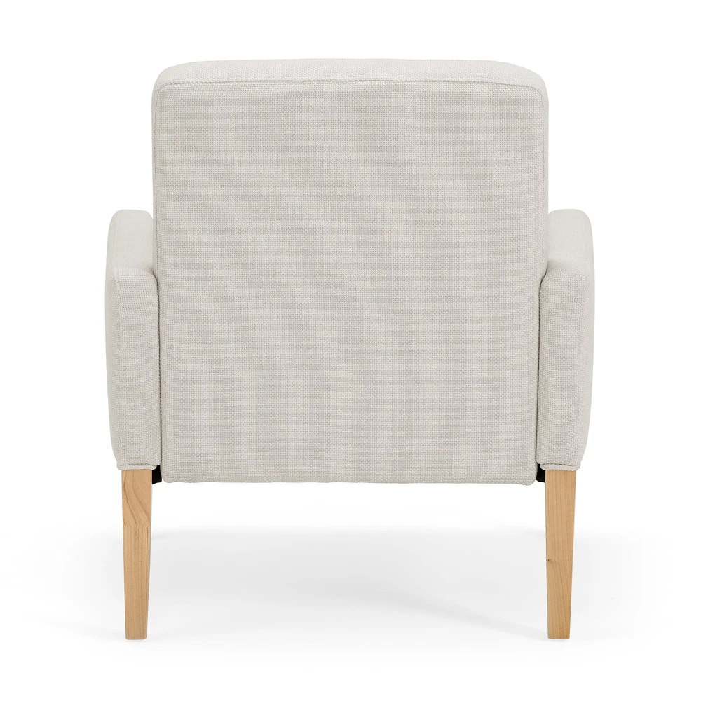 The Better Homes & Gardens Reading Accent Chair, Cream, combines comfort and style in one stylish piece. With a beautiful cream fabric and light wood legs, this chair elevates any living space. Plush Dacron and high-density foam cushions provide relaxing support, while the webbed seat suspension ensures durability. Easy to assemble, this sturdy chair offers long-term comfort and aesthetic appeal in any room. Superior comfort with Dacron and high-density foam cushions Webbed seat suspension for extra support Ready to use out of the box, no assembly required Seat Height: 33'' Seat Width: 30.31'' Seat Depth: 31.5'' Weight Capacity: 300 lbs.
