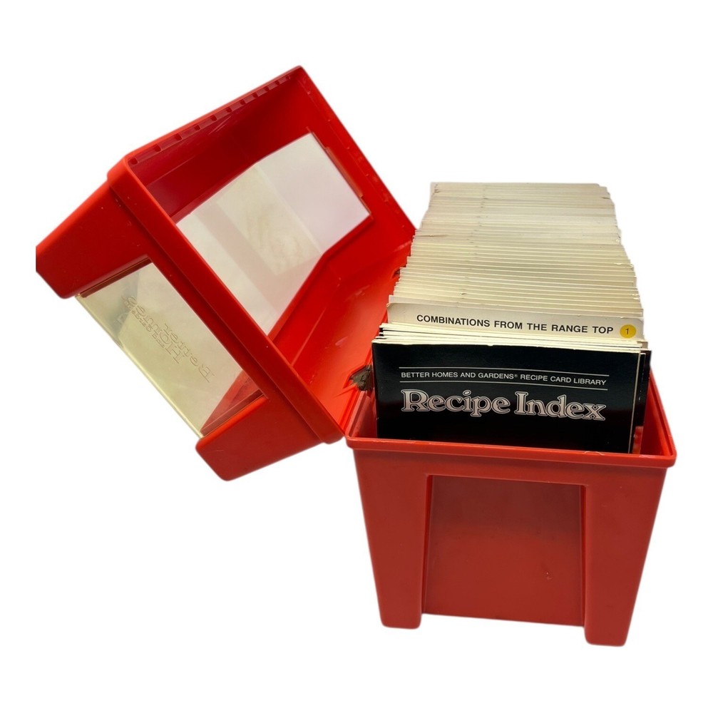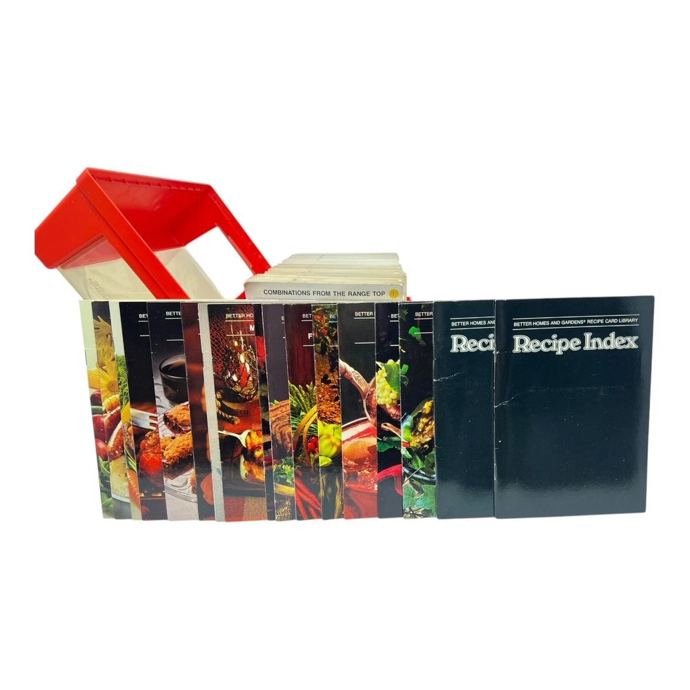 Vintage 1980 Better Homes & Gardens Red Recipe Card Library includes 15 bonus booklets. Ideal for recipe enthusiasts and collectors. This charming set offers a delightful way to organize and display your favorite recipes. • Vintage 1980 set • Better Homes & Gardens brand • Includes 15 bonus booklets • Perfect for collectors • Red recipe card library Condition: Pre-Owned Good Pre-owned in great, vintage condition. See all photos as part of the description. Very light use. Looks complete but did not count all the recipe cards. Very heavy due to quality of printed cards.