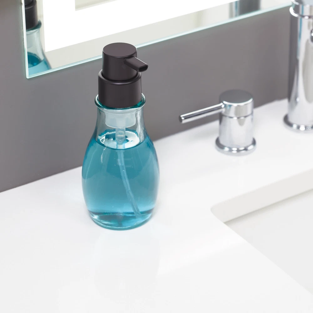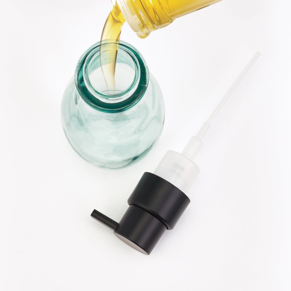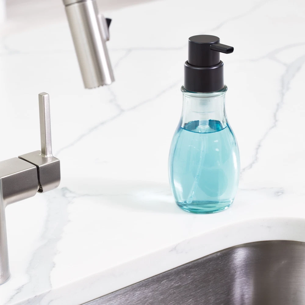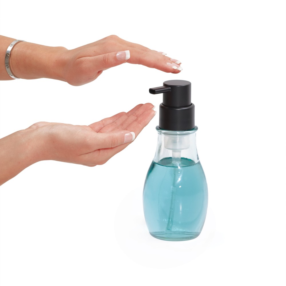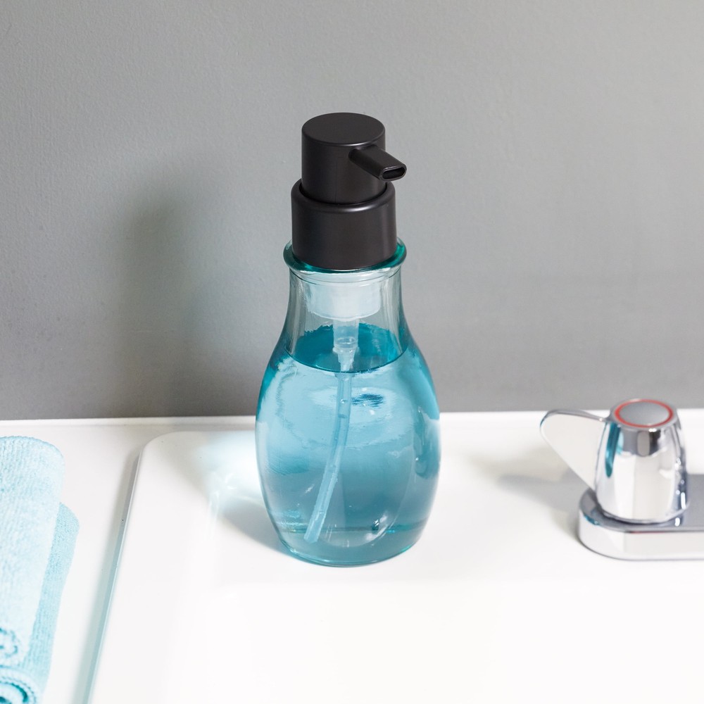 Better Homes & Gardens Recycled Glass Foaming Soap Pump, Matte Black Add a touch of style and sustainability to your sink with the Better Homes & Gardens Recycled Glass Foaming Soap Pump. This reusable soap dispenser is made with recycled glass to provide an eco-friendly alternative to single-use plastic bottles, and it is made for use with any brand of liquid foaming soap or hand sanitizer. Its versatile and modern design can be used in the bathroom, kitchen, laundry room, and more. The durable transparent recycled glass bottle with matte black finish pump stands up to every day use and matches a variety of home decor styles. Made with recycled glass to provide an eco-friendly alternative to plastic Can be refilled with any brand of liquid foaming soap or hand sanitizer Simply remove the pump and pour soap into the wide-opening bottle to refill Versatile design can be used in the bathroom, kitchen, laundry room, and more Durable clear recycled glass bottle with matte black finish pump is made to last