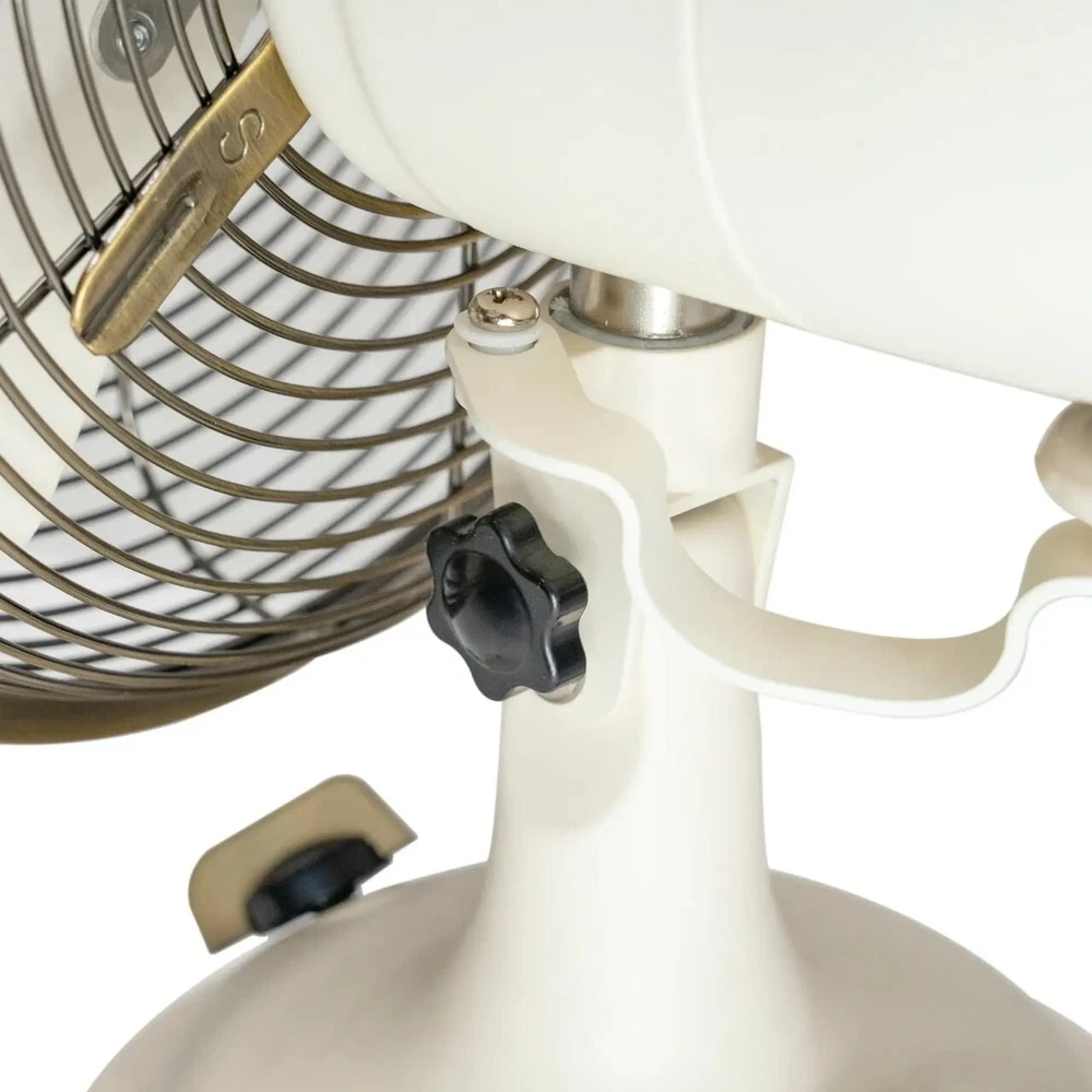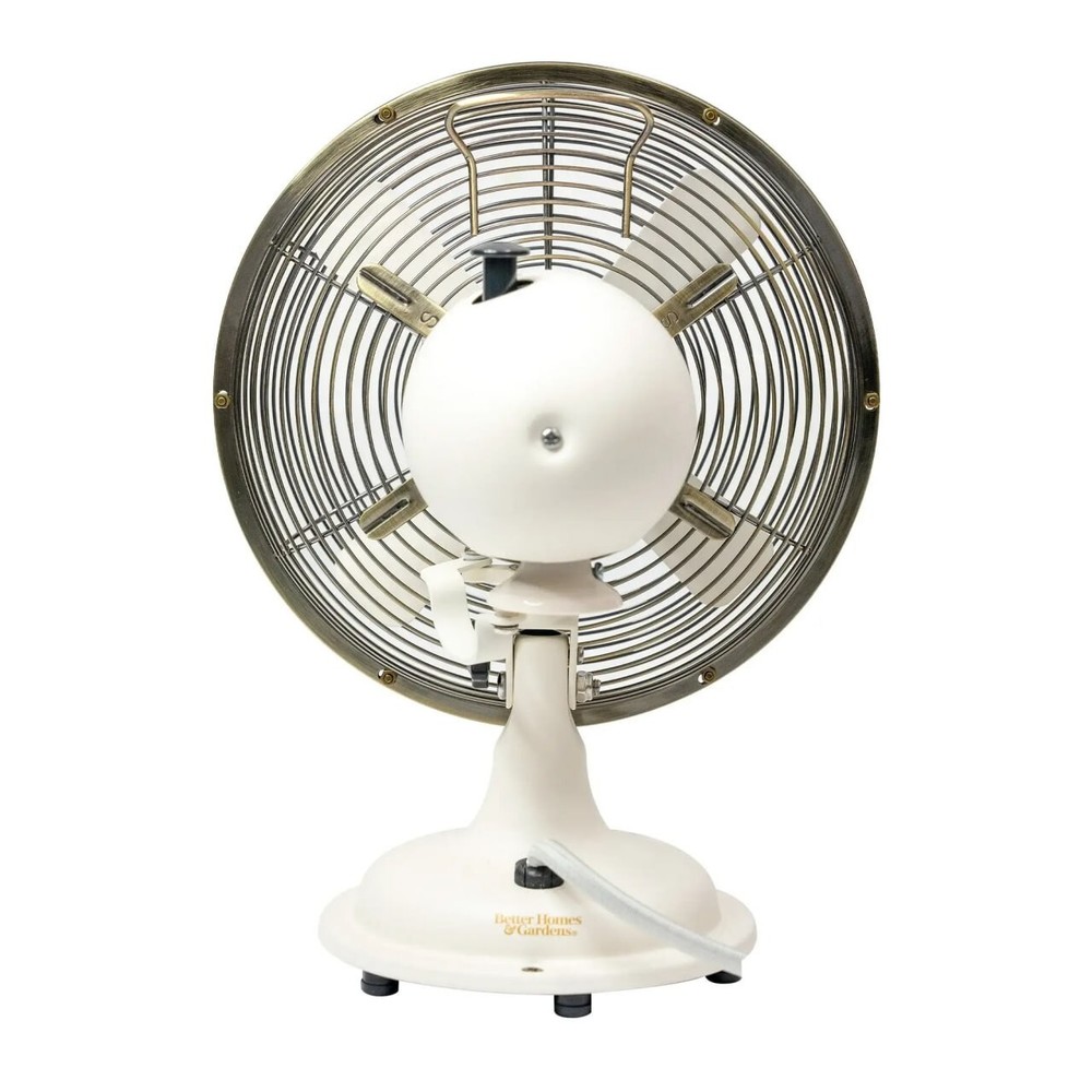 Product details Maintain the perfect comfort level in almost any room with the new Better Homes & Gardens 8 inch 3-speed metal table fan. Designed for taking up a small footprint on desks, tabletops, shelves, and other spaces, this vintage-looking fan features your choice of three speeds, oscillation, and a tilting head to provide the perfect angle of air circulation. The Better Homes & Gardens 8 inch retro 3-speed metal table fan is perfect for both large and small rooms including bedrooms, dining rooms, living rooms, dens, playrooms, offices, classrooms, dorm rooms, and more. The Better Homes & Gardens retro 12 inch 3-speed metal table fans and Better Homes & Gardens 16 inch retro 3-speed metal standing fans are also available. Retro-styled, vintage looking table fan Durable metal construction for a long life Offers three different speed settings and oscillation to keep air moving through rooms Comes new out of box