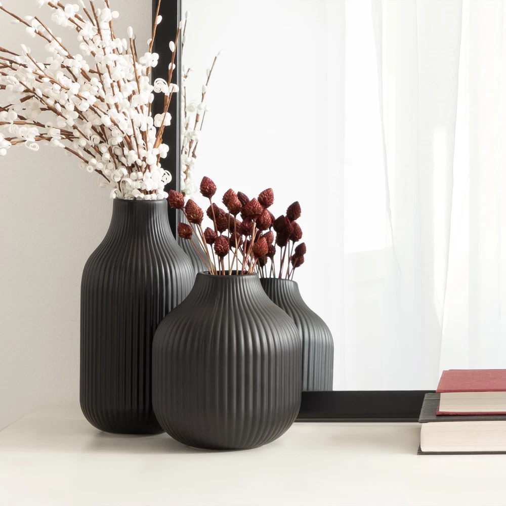 Add a touch of elegance to your tabletop with the Better Homes & Gardens Ribbed Cream Ceramic Vase Set. The ribbed ceramic vases have a subtle cream color that allows them to complement a variety of home décor styles. Use them to display a small floral arrangement or leave empty - either way this face duo makes a beautiful addition to your décor. The vases are also a gift to give for holidays, housewarmings, birthdays and more. On Jun 5, 2025 at 01:47:11 PDT, seller added the following information: