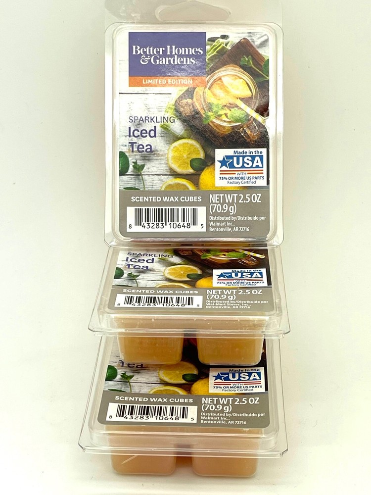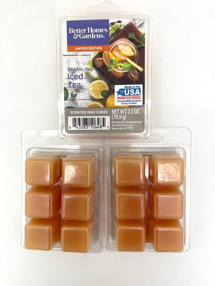 Better Homes & Gardens SPARKLING ICED TEA 6 Scented Wax Cubes each - 3 PACK Highly fragranced Easy clean-up with a paper towel Wax can be recycled or reused Contains six wax melts Can be combined with other wax cubes for complex fragrances. Thank you for looking. Please see my ebay store for hundreds of more great deals - always with fast, free shipping: https://www.ebay.com/str/directfromus Always FREE and SUPER SPEEDY SHIPPING within the USA. We ship within one business day! Check out our feedback and bid with confidence!