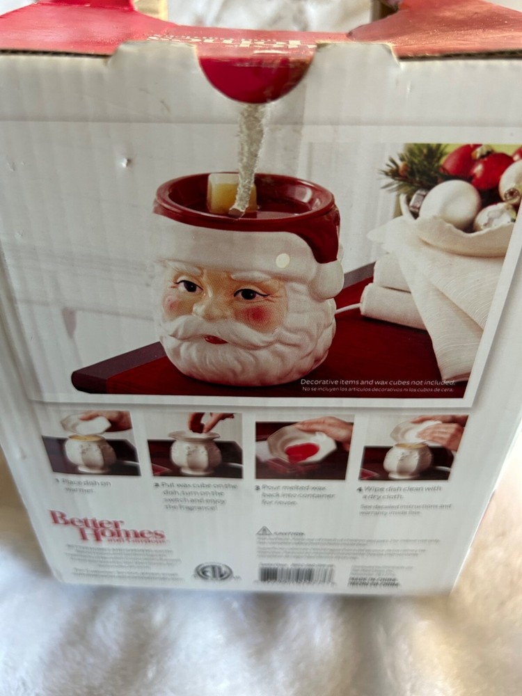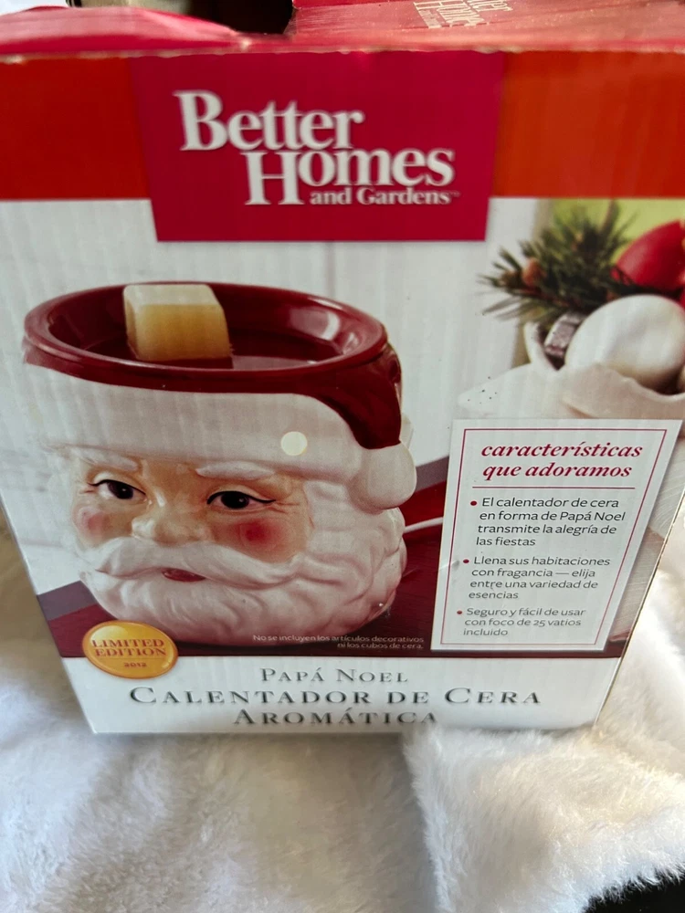In the twinkling glow of holiday lights, this Santa Claus wax warmer adds warmth to your home. A charming ceramic figure, it fills the air with festive scents, embodying the spirit of Christmas. Its nostalgic design invokes cherished memories, inviting you to gather around and celebrate the holiday season. • Ceramic construction • Limited Edition 2012 • Festive Santa Claus design • Holds scented wax cubes • Red & white color scheme • Better Homes & Gardens Box shows slight wear, but the wax warmer is in excellent condition. Thank you for viewing and purchasing our items. We strive to bring you the best quality products. But things happen. If there is a problem with the item you receive, whether due through shipping or otherwise, please reach out to us and we will glad help in whatever way we can. We appreciate your support of our small business. All items are normally shipped for free or at a discounted rate and sent within 48 hours. We provide positive feedback on all our products once the items show delivered.