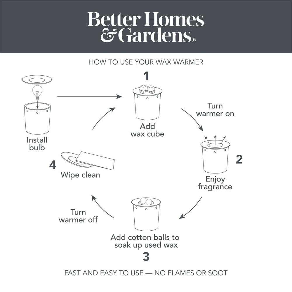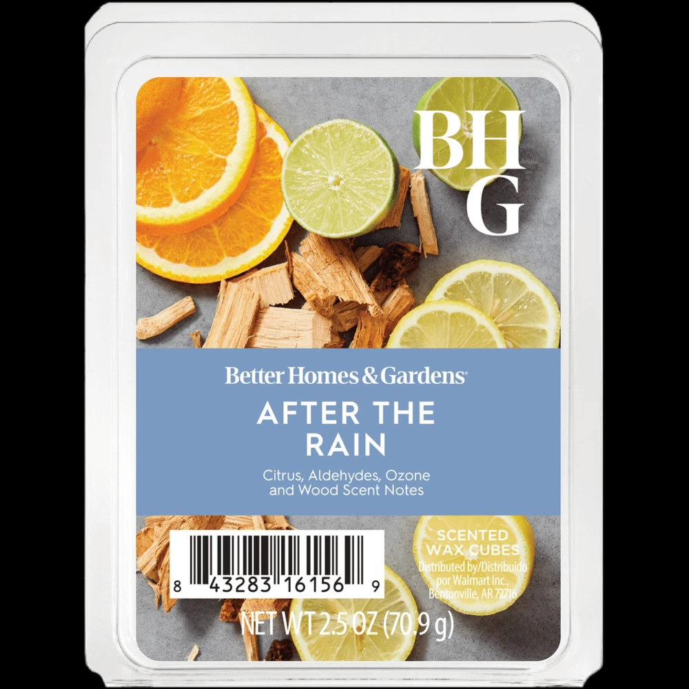Description: Better Homes & Gardens After the Rain Scented Wax Melts capture the essence of a fresh, dewy morning. Breezy ozones mingle with sparkling grapefruit, soft herbs, and delicate white petals, while hints of crystal rain and sheer aldehydes lend a cool, refreshing touch. This fragrance, grounded by white woods and cool musk, fills your home with a soothing aroma that evokes a sense of calm after a gentle rain shower. Simply break off a piece, add it to your favorite electric wax warmer, and let the comforting scent transform your space. Explore the full line of Better Homes & Gardens home products, available exclusively at Walmart.com or at your nearest Walmart store, to complete your home’s ambiance with matching decor and accents. About Item: ncludes one pack of 5 oz After the Rain scented wax melts Fresh, breezy blend of ozones, grapefruit, and white woods Releases a soothing fragrance for a relaxing atmosphere Easy to replace wax melts as needed for continuous aroma Use with an electric wax warmer (sold separately) for a flame-free experience