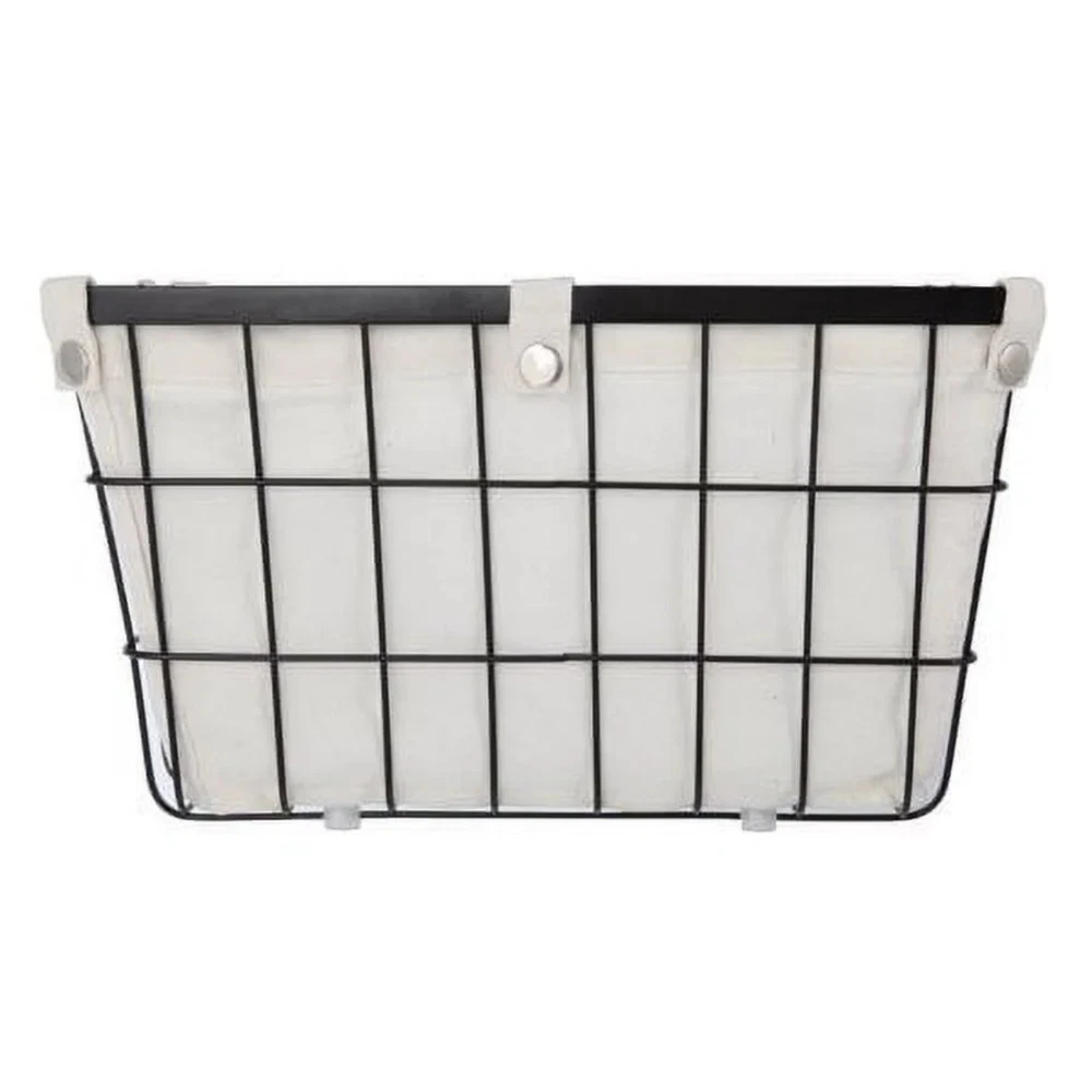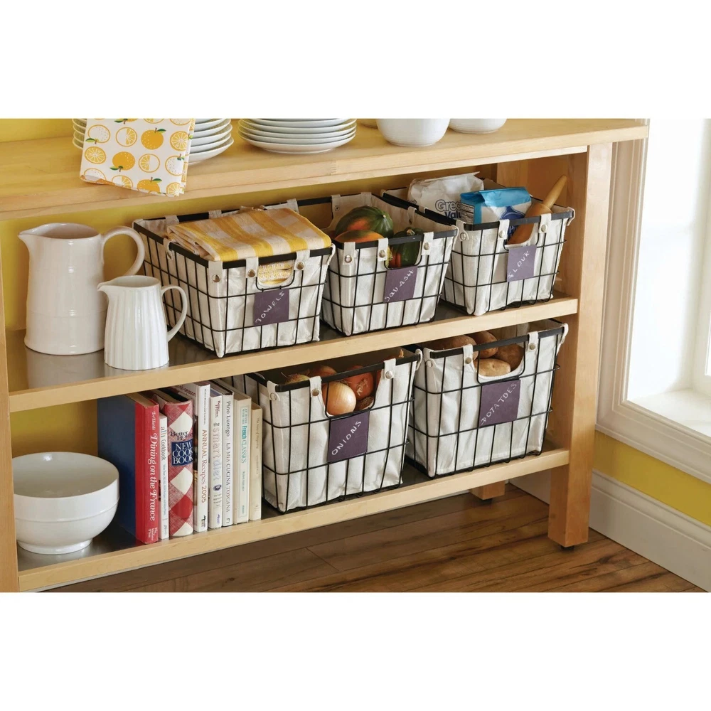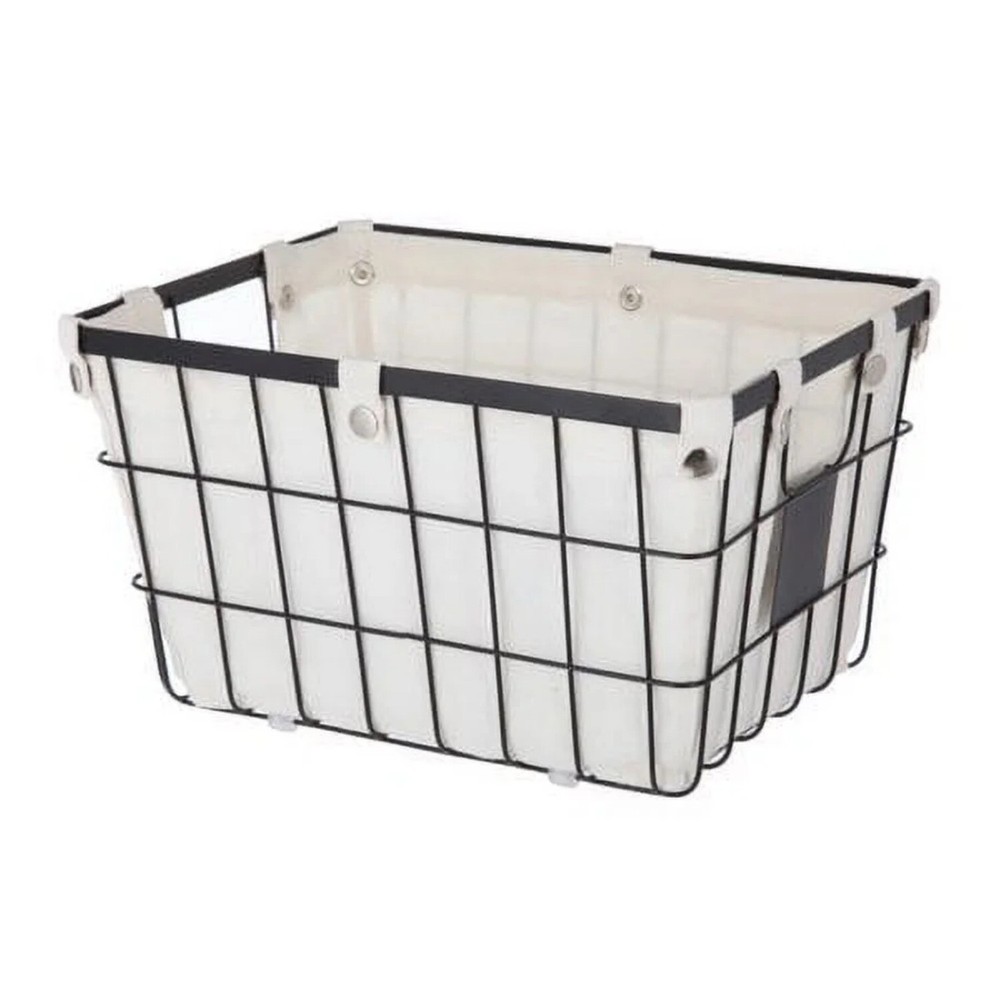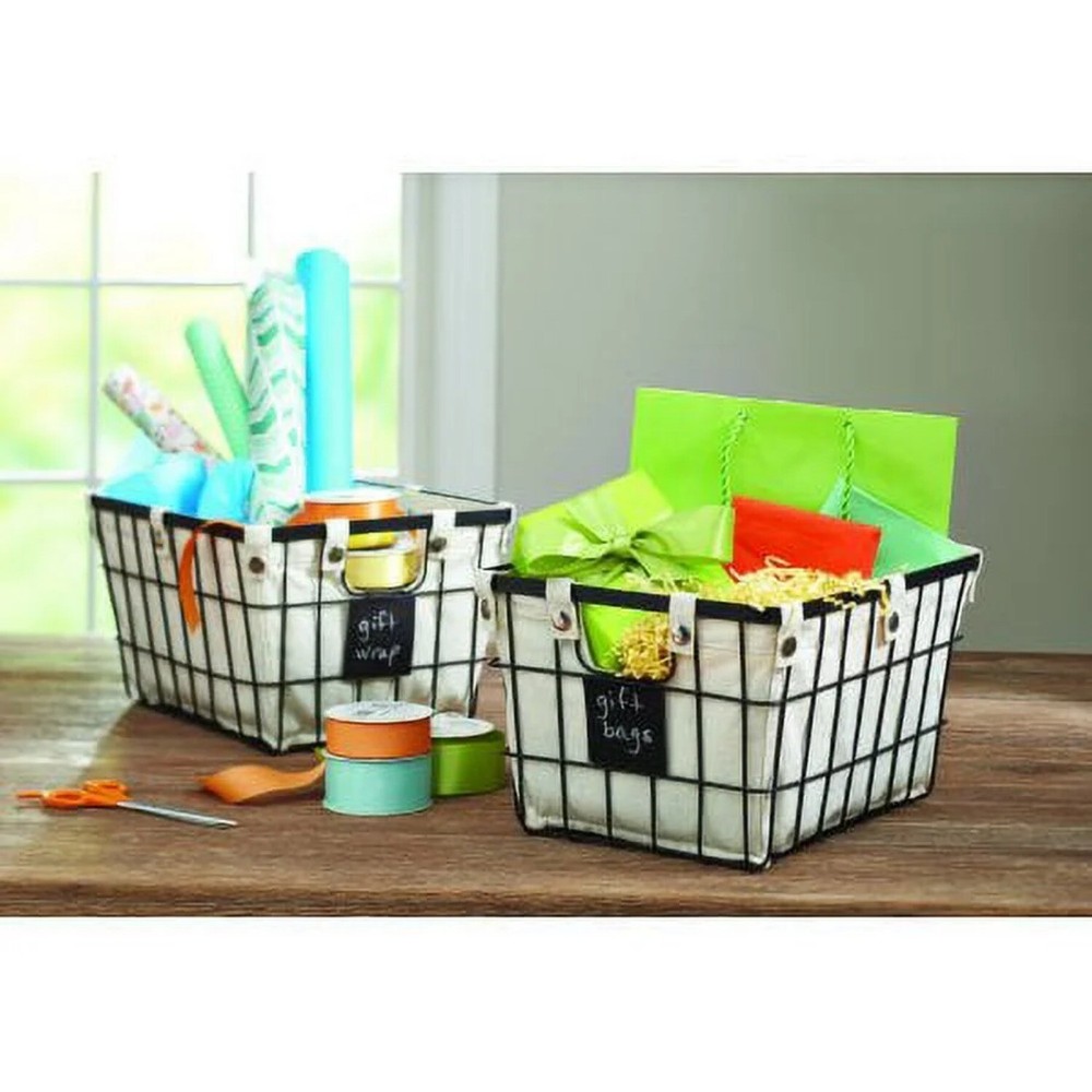 The Better Homes & Gardens Small Wire Storage Basket with Chalkboard, 2-Piece allows you to tidy up your space in an attractive manner. This set is ideal for storing many household and office items. Each storage basket features handles for easy carrying and a removable liner that is secured by snap closures. The liners may be washed in cold water on a gentle cycle and air dried. Featured on the front is a small chalkboard piece, allowing you to write a customized label for quick identification of the contents. The neutral colors of these wire baskets will blend well with any décor. Better Homes & Gardens Small Wire Storage Basket with Chalkboard, 2-Piece Dimensions: 10" L x 8" W x 13" H Suitable for storing a wide variety of household and office items Features chalkboard piece for customized labeling Coordinates well with other décor Removable fabric lining with snap closures Front and back handle openings