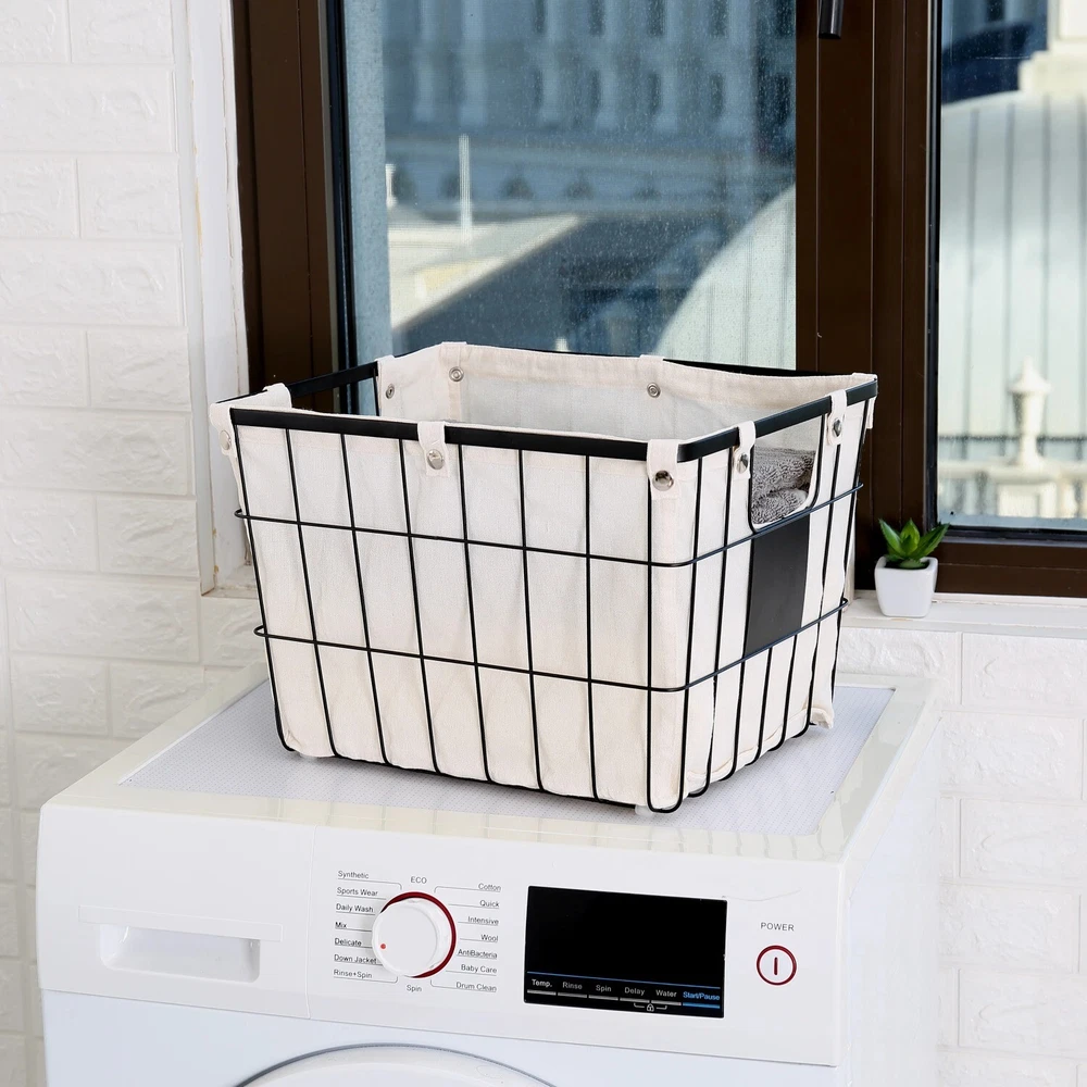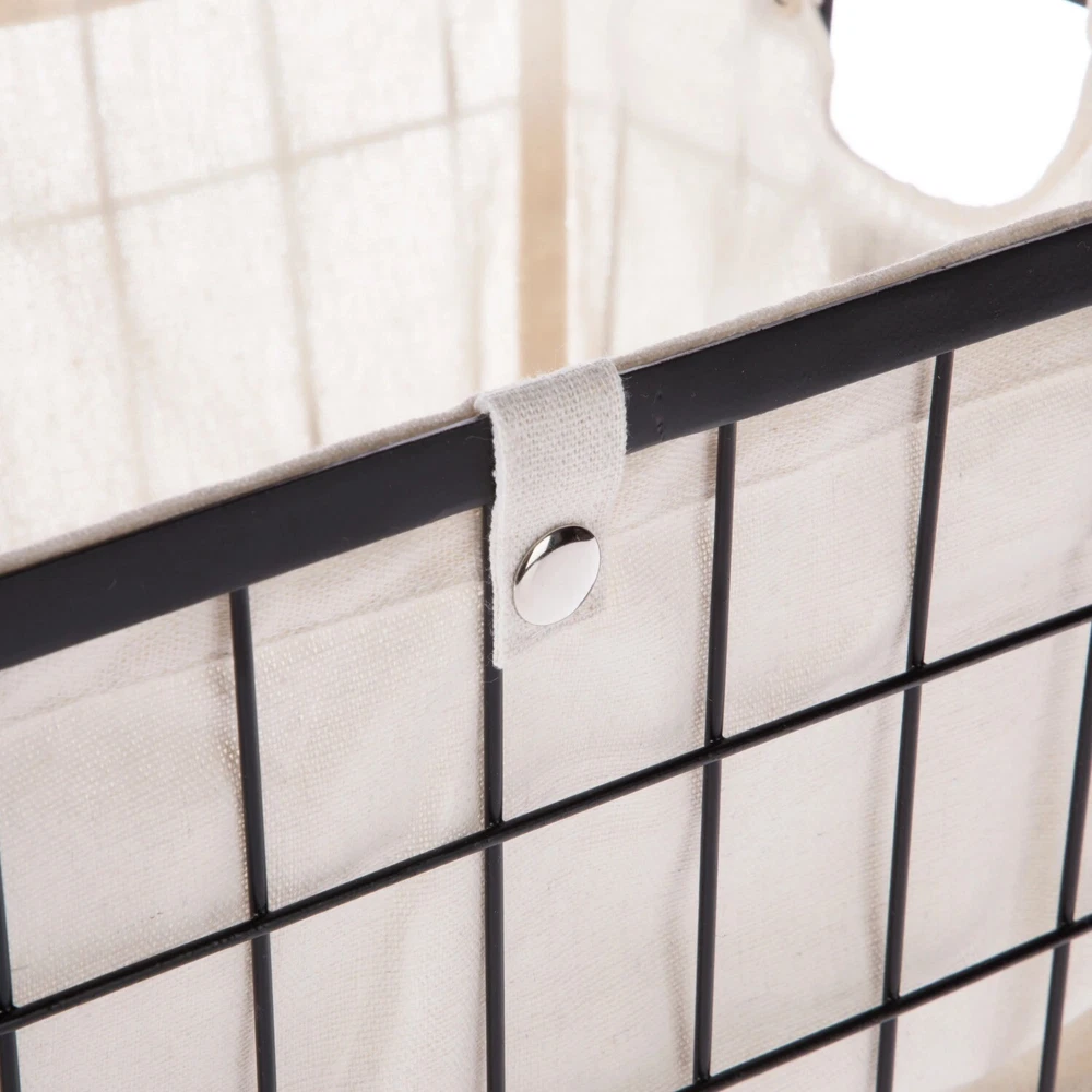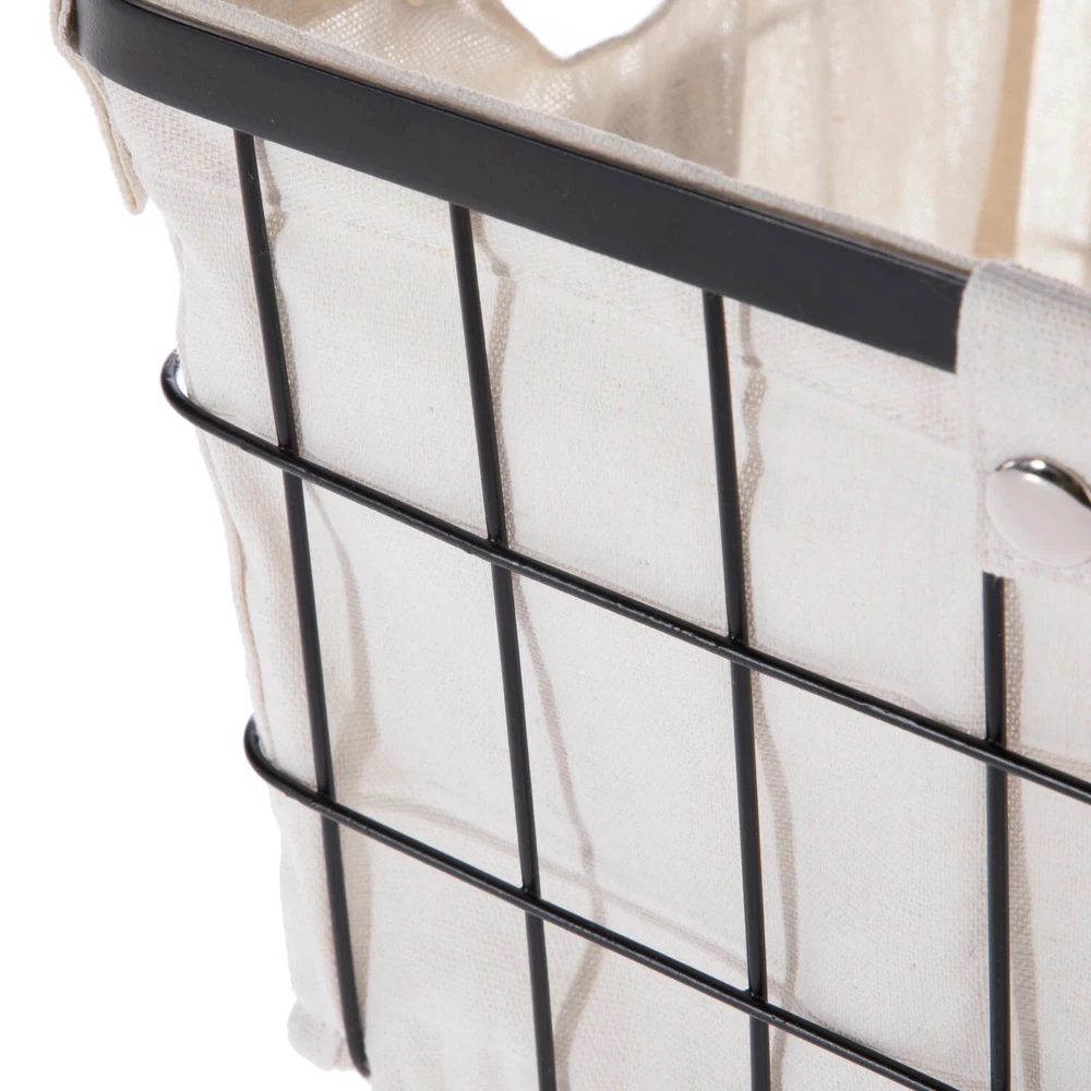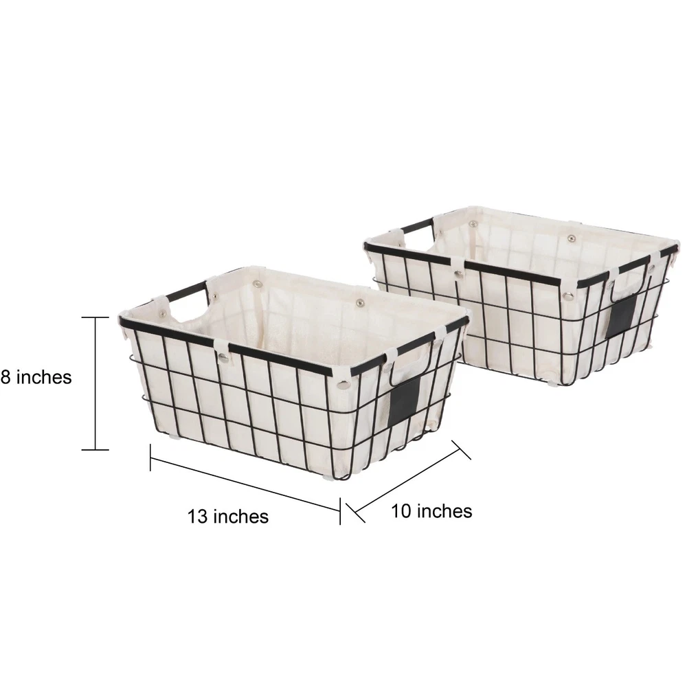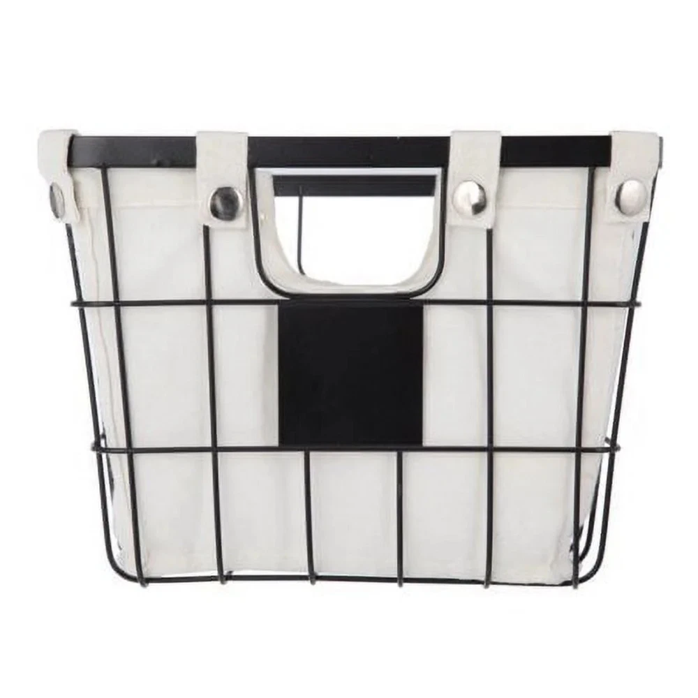 The Better Homes & Gardens Small Wire Storage Basket with Chalkboard, 2-Piece allows you to tidy up your space in an attractive manner. This set is ideal for storing many household and office items. Each storage basket features handles for easy carrying and a removable liner that is secured by snap closures. The liners may be washed in cold water on a gentle cycle and air dried. Featured on the front is a small chalkboard piece, allowing you to write a customized label for quick identification of the contents. The neutral colors of these wire baskets will blend well with any décor. Better Homes & Gardens Small Wire Storage Basket with Chalkboard, 2-Piece Dimensions: 10" L x 8" W x 13" H Suitable for storing a wide variety of household and office items Features chalkboard piece for customized labeling Coordinates well with other décor Removable fabric lining with snap closures Front and back handle openings