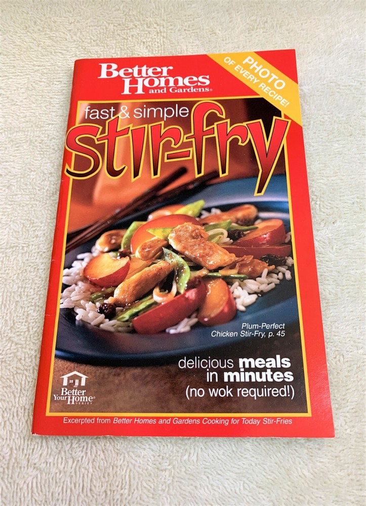 This is a vintage softcover staple bound cookbook/magazine - Better Homes & Gardens 'Fast & Simple Stir-Fry' It was published in 2002. It is in as-new condition with no signs of previous reading. There may be smallest shelf wear. I accept eBay payments, and I do participate in eBay's global shipping program. I will try to ship your package within 3 business days. This is a non-smoking and pet free household. Returns are accepted within 14 days of when you received your item. Please contact me immediately if there is a problem. Please DO NOT leave negative feedback without allowing me to correct the issue. I will always try to work with you to resolve it. Shipping is not refundable. Thank you and happy bidding.