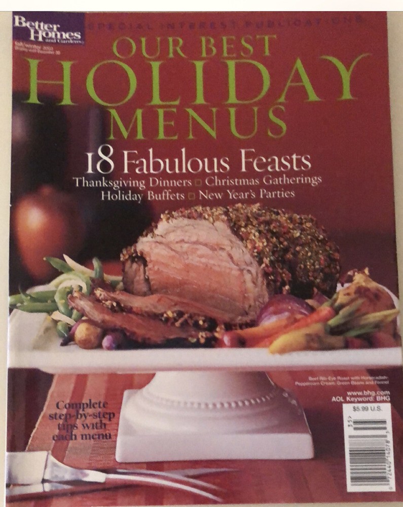 Better Homes & Gardens Special Interest Magazine 2003 Our Best Holiday Menus Thanksgiving Dinner - Christmas Gatherings - Holiday Buffets - New Year’s Parties Condition is Brand New and will be shipped in a plastic sleeve for protection Thanks
