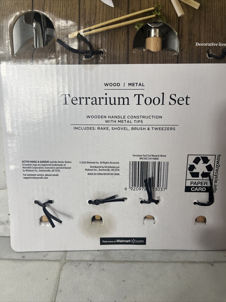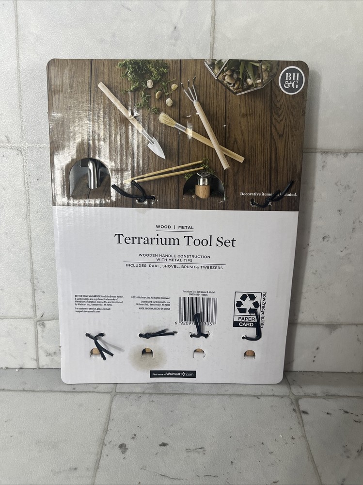 Better Homes & Gardens Terrarium Tool Set Wood Metal Rake Shovel Brush Tweezers....