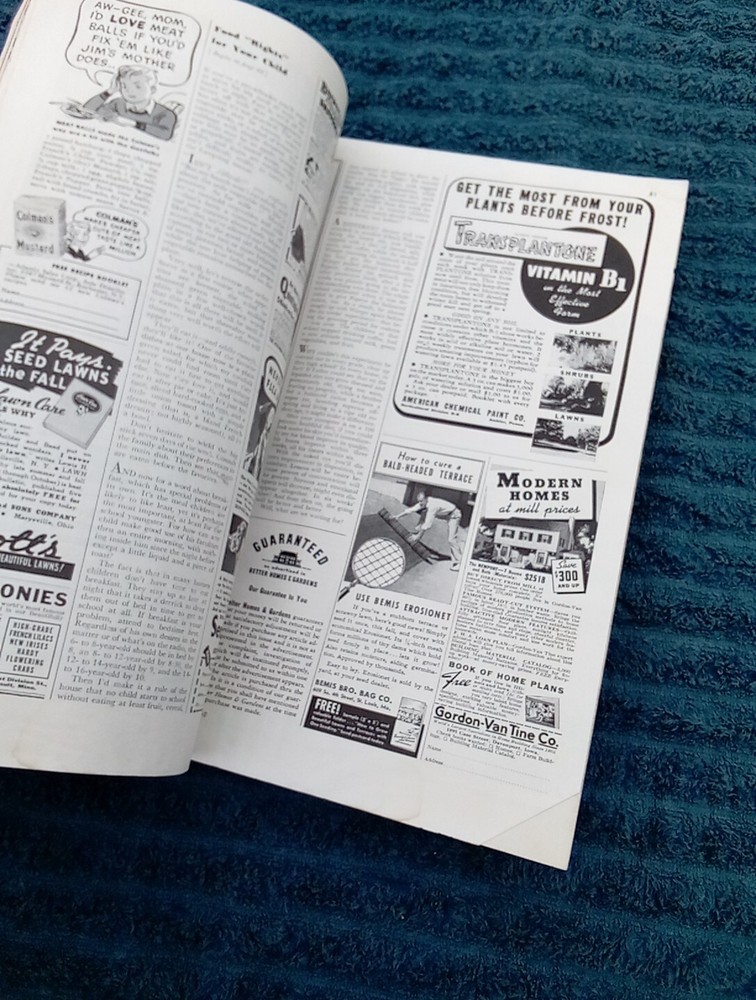 Thanks for stopping! Up for sale today, we offer this Better Homes & Gardens Vintage Full Issue Ladies Magazine Book September 1940 - This is an estate find for me - Just trying to pass it along - Will be listing others similar - GREAT OLD ADS! Looks to be is fair condition for being 80 years old - Might be some old water damage to cover and 1st page or so - Not perfect See photos - Make an offer - Thanks!