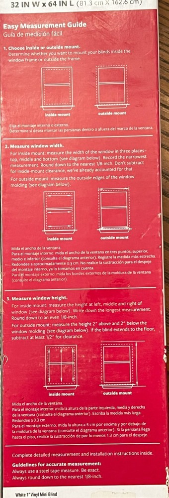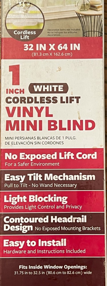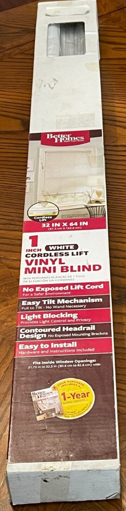 Better Homes & Gardens White 1" Cordless Lift Vinyl Mini Blind, 32" x 64" Sealed New These are new and still sealed, I purchased them eons ago for a couple windows in a warehouse we had at the time, but we are many years removed from that warehouse and still have the new blinds. Free US Shipping - These are heavy Satisfaction guaranteed. NO Stock Photos – All our ads have pictures of actual item being sold. All trading cards are shipped in both a soft and hard sleeve and protected against dampness. Card lots (“lots” being any single ad with 4 or more cards in the same ad) excluded, but lots will ship in soft sleeves and protected from any damage. All comics are bagged and boarded. At Gliding Eagle We Sell Many Product Lines Which Might Interest You. All available at the Gliding Eagle eBay Store: Video Games, Software, Books, Wholesale Lots, Comics, Limited Run Trading Cards Plus more……… Thanks, Gliding Eagle