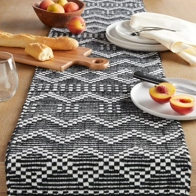 Product details No one denies that the kitchen is the heart of the home, and the dining table is the ultimate gathering spot to share a conversation and satisfying meal. Better Homes & Gardens table and kitchen and dining textiles will create a warm, inviting living space with colors and prints that you and your family will love. Create a custom and coordinated tablescape and kitchen decor with Better Homes & Gardens tablecloths, all while incorporating decorative accents with table runners, placemats, and chair cushions. Serve up a warm welcome to family and guests with the Better Homes & Gardens Wisteria Table runner gracing your dining table. This table runner features a beautiful design that will create a casual, welcoming space for your guests. The Better Homes & Gardens Wisteria Table runner will add style and function to your table decor. Create your own custom look that reflects your style by mixing and matching with coordinating pieces. This table runner will create a welcoming look for your dinner party yet are practical for everyday use. This table runner is easy to clean and is sure to stand the test of time. Measures 14”W x 90”L. Imported. Found exclusively at Walmart.com. Includes 1 table runner Measures 14"W x 90"L 100% recycled material Easy care, spot treat Found exclusively at Walmart.com