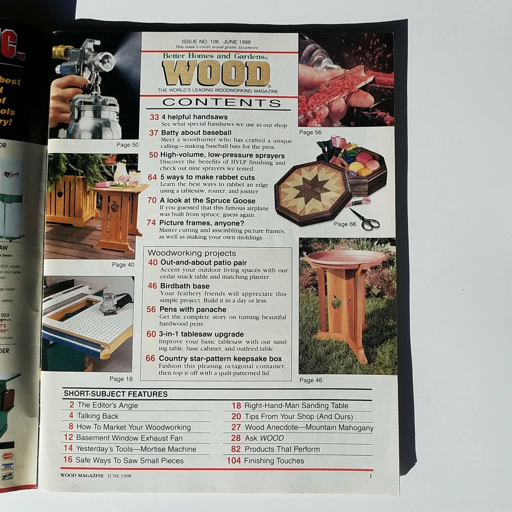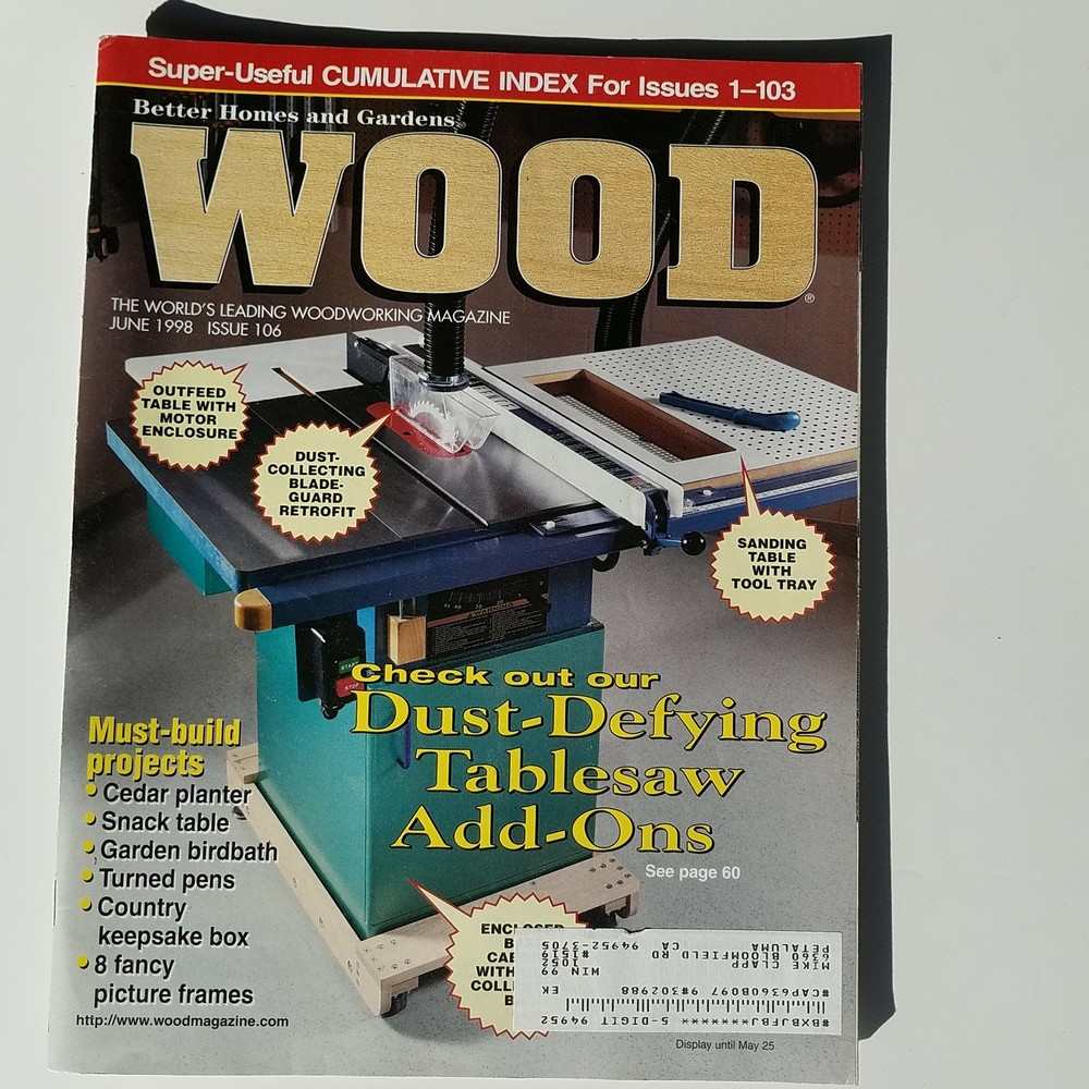 Thanks for shopping the Winchester Mystery Kitchen. Shipped secure with 1 business day handling. If you have questions about the item or special packing/shipping needs please contact us before placing your order so we can make sure we get all the right boxes checked. Better Homes & Gardens: Wood Magazine - June 1998 Issue 106 See our photos for the detailed condition of the item. For more information about the item condition please send us a message with the details you want. Photos are generally of the exact item you receiving with the exception of items we have multiple quantity of, so please make sure you take a look before you buy. tgw20180909084719008-FF2017 tgw-pl::=::C40 A1 FF2017:=:Better Homes & Gardens: Wood Magazine - June 1998 Issue 106:=:tgw20180909084719008:=:34143:=:tgw20180909084719008