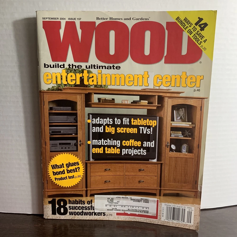 This is a September 2004 issue of Better Homes & Gardens Wood Magazine, with issue number 157. It contains a variety of articles and topics, including art, craft books, and woodworking. The magazine is written in English, has a monthly publication frequency, and was distributed through paid circulation. The publication is perfect for those interested in home and garden, hobbies and crafts, cabinetry, and woodworking. Additionally, it includes an article on the 18 habits of successful woodworkers and a feature on building the ultimate entertainment center. The magazine is in very good condition and is an excellent addition to any woodworking enthusiast's collection.