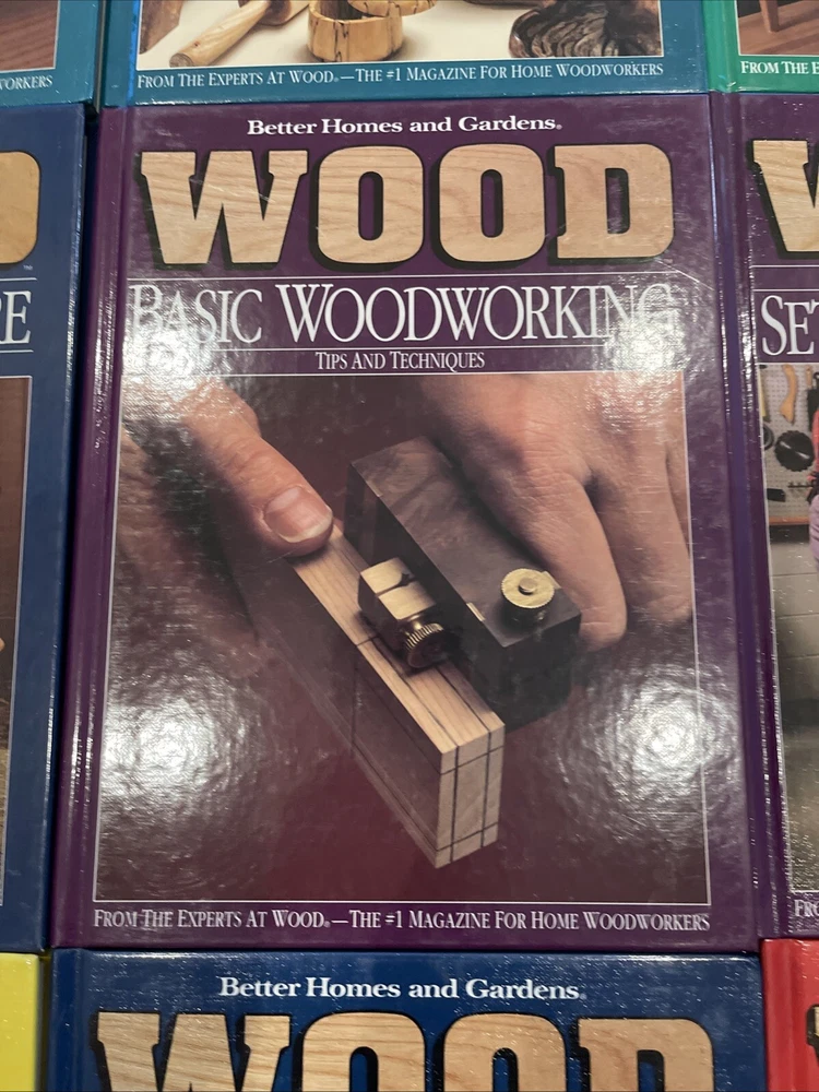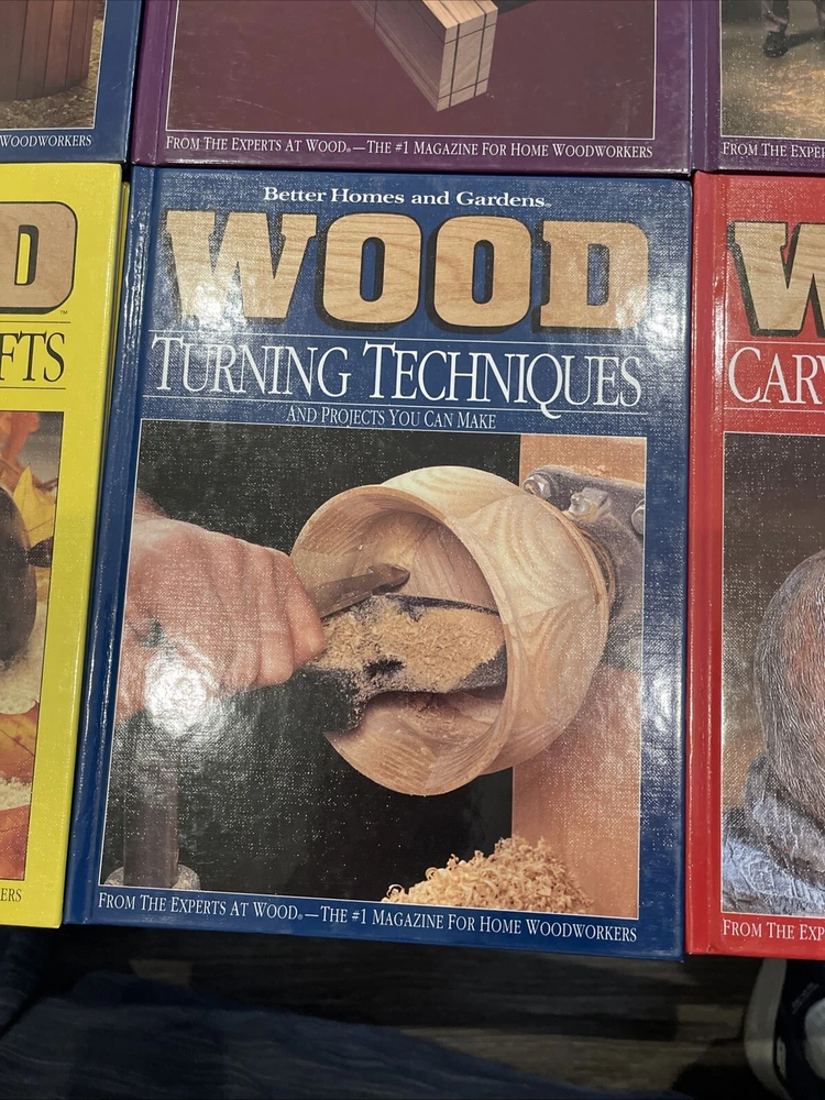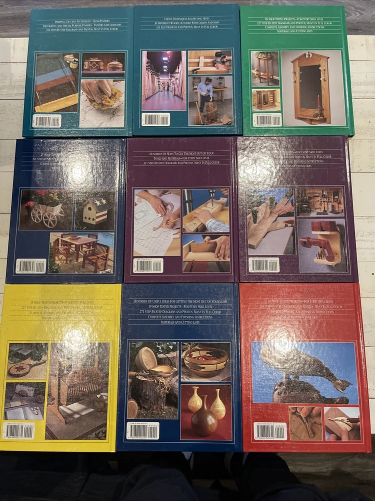 This 9-book lot from *Better Homes and Gardens* offers a comprehensive guide to woodworking. Each book is packed with detailed instructions, expert tips, and inspiring projects to help you enhance your skills and create beautiful woodwork. **Included Titles:** 1. **Finishing Techniques** – Learn how to give your projects a professional finish. 2. **Classic Woodworking Woods** – Discover different woods and how to use them effectively. 3. **Small Furniture You Can Make** – Create functional and stylish small furniture pieces. 4. **Outdoor Furniture and Accessories** – Build durable and elegant outdoor furniture. 5. **Basic Woodworking Tips and Techniques** – Master essential woodworking skills. 6. **Guide to Setting Up Your Shop** – Design and organize your woodworking space. 7. **Woodcrafted Gifts You Can Make** – Make unique and thoughtful handmade gifts. 8. **Turning Techniques and Projects** – Explore woodturning for functional and decorative pieces. 9. **Carving Techniques You Can Use** – Learn the art of wood carving for stunning designs. Please see pictures for individual titles, overall condition, and details.